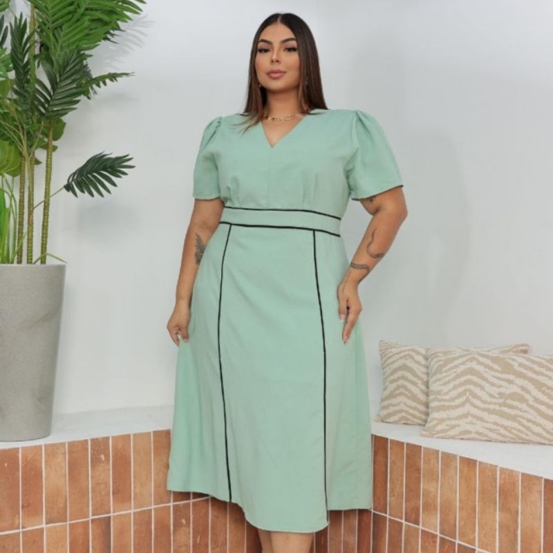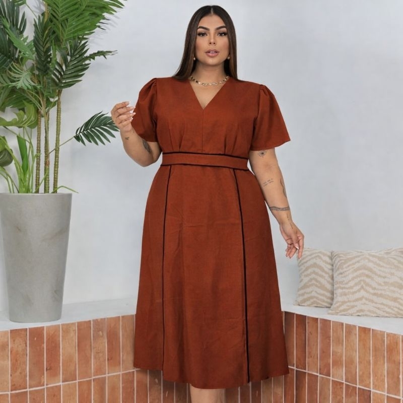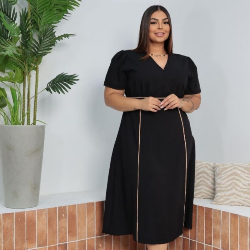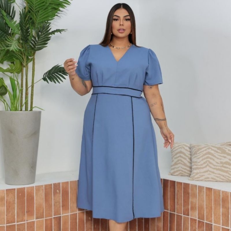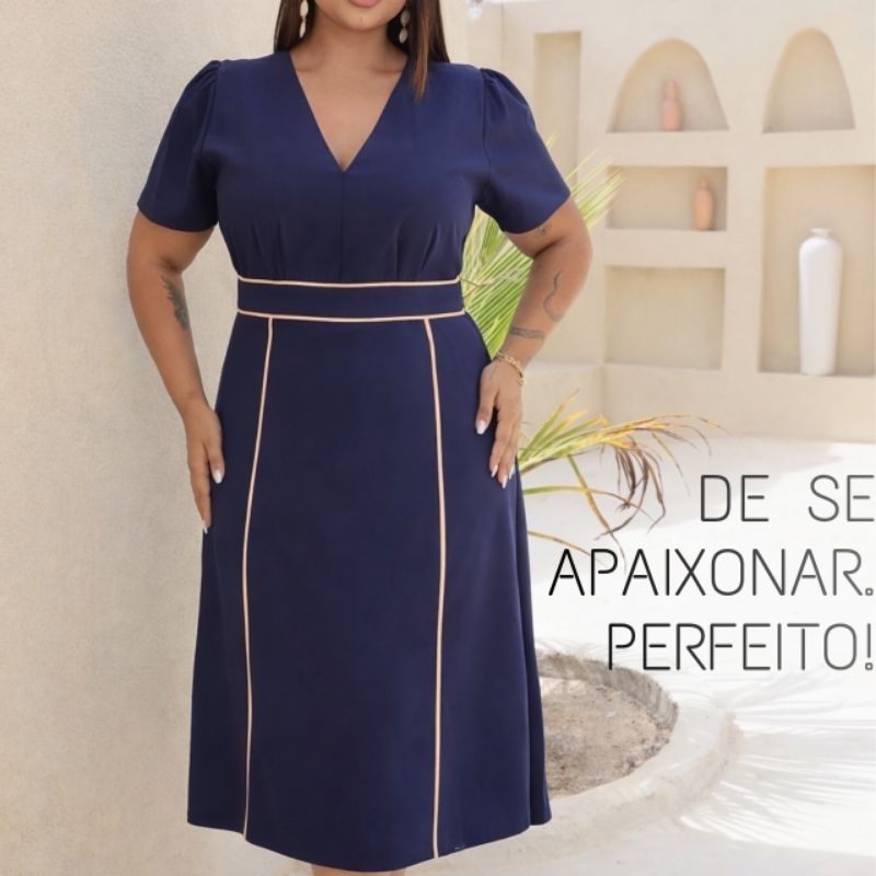 Vestido Midi Feminino sensorial elegante para festa Moda Evangélica Cristã Forrado G1 G2 - Meliza