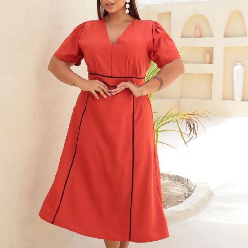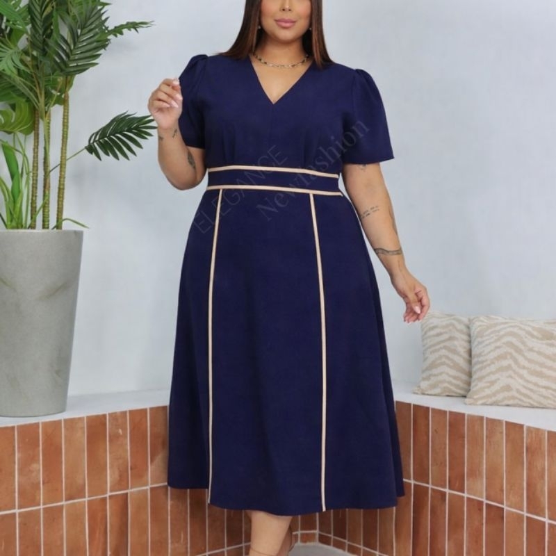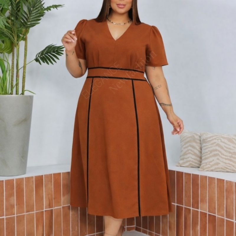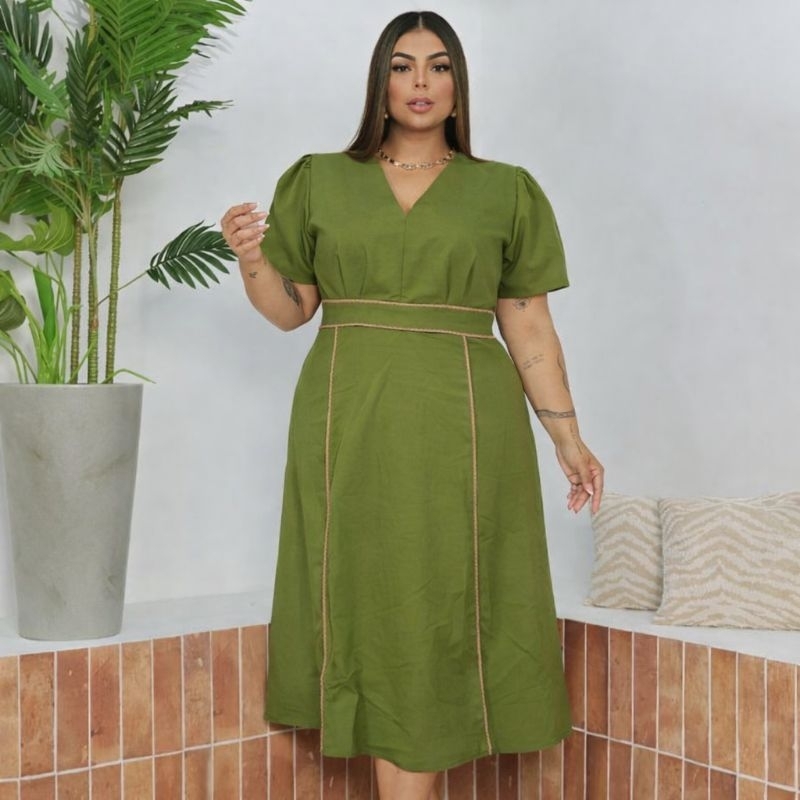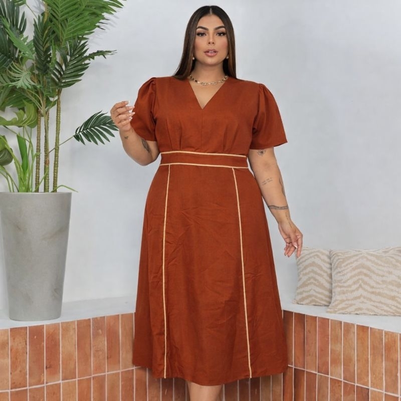 Vestido Midi Feminino sensorial elegante para festa Moda Evangélica Cristã Forrado G1 G2 - Meliza