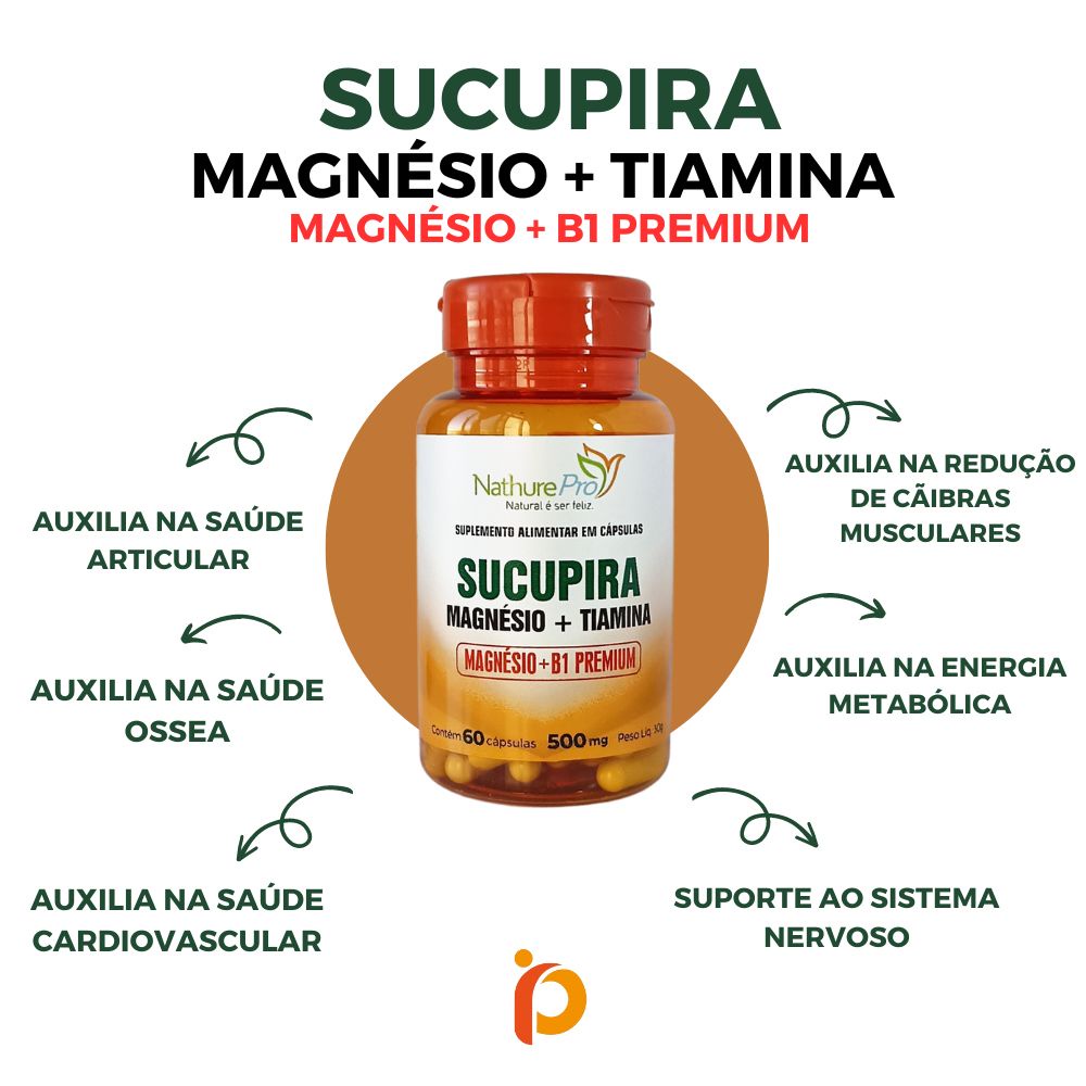 Suplemento Alimentar - Sucupira Magnésio + Tiamina (Magnésio + B1 Premium) 60 Cápsulas 500mg - Matéria prima importada!