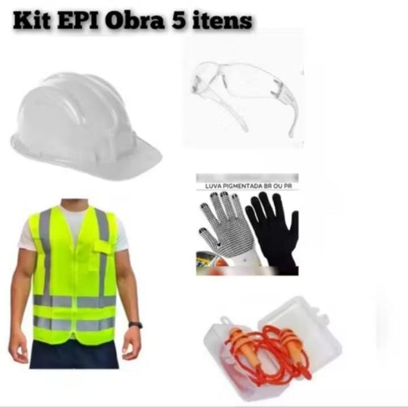 Kit EPI's para obra 5 itens: Capacete, Luvas, Óculos, Protetor Auricular e Colete Refletivo
