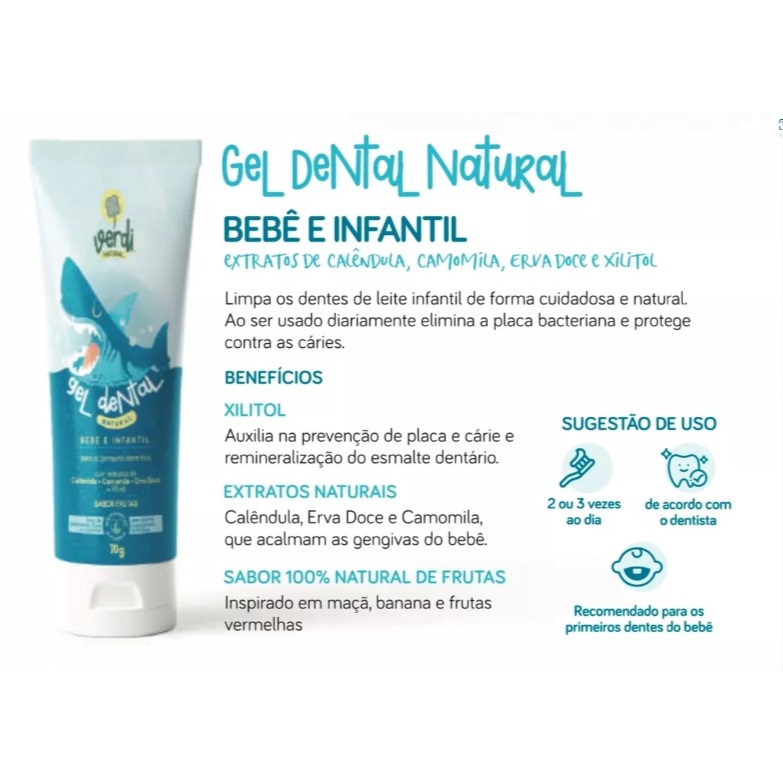 Gel Dental Natural para Bebê SEM FLÚOR Infantil Extratos de Calêndula, Camomila, Erva Doce e Xilitol