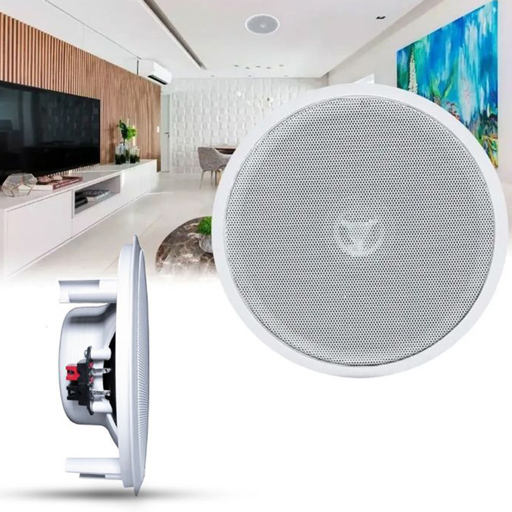 Kit 2 Arandela Alto Falante Som Ambiente Acustica Teto Parede Embutir Gesso Redonda Coaxial Leson 140w Rms