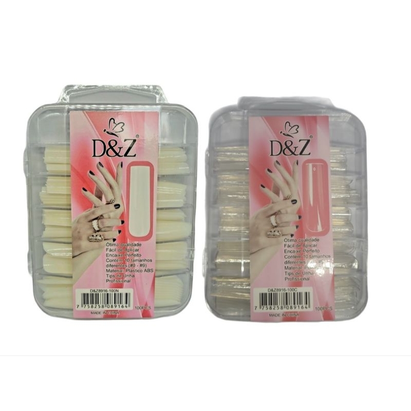 kit atacado Postiça curvatura C realista D&Z EXTRA GRANDE D&Z 100 unidades de Unhas postiças Transparente ou leitosa D&Z