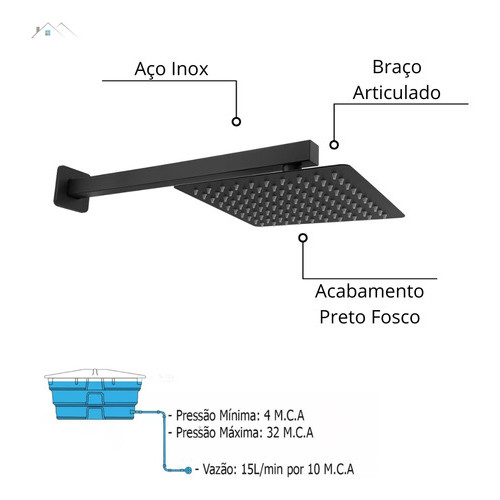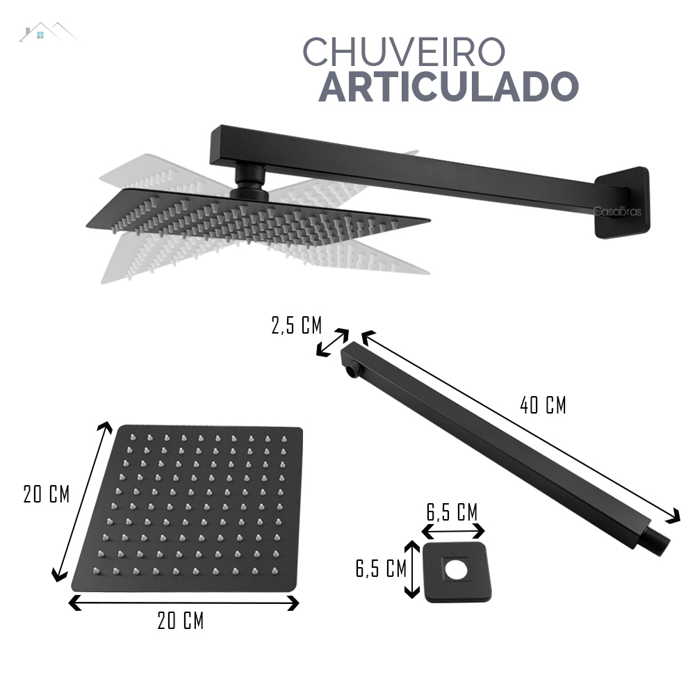 Chuveiro Slim Quadrado Preto com Acabamento para Registro Conjunto Banho Acabamento Quadrado