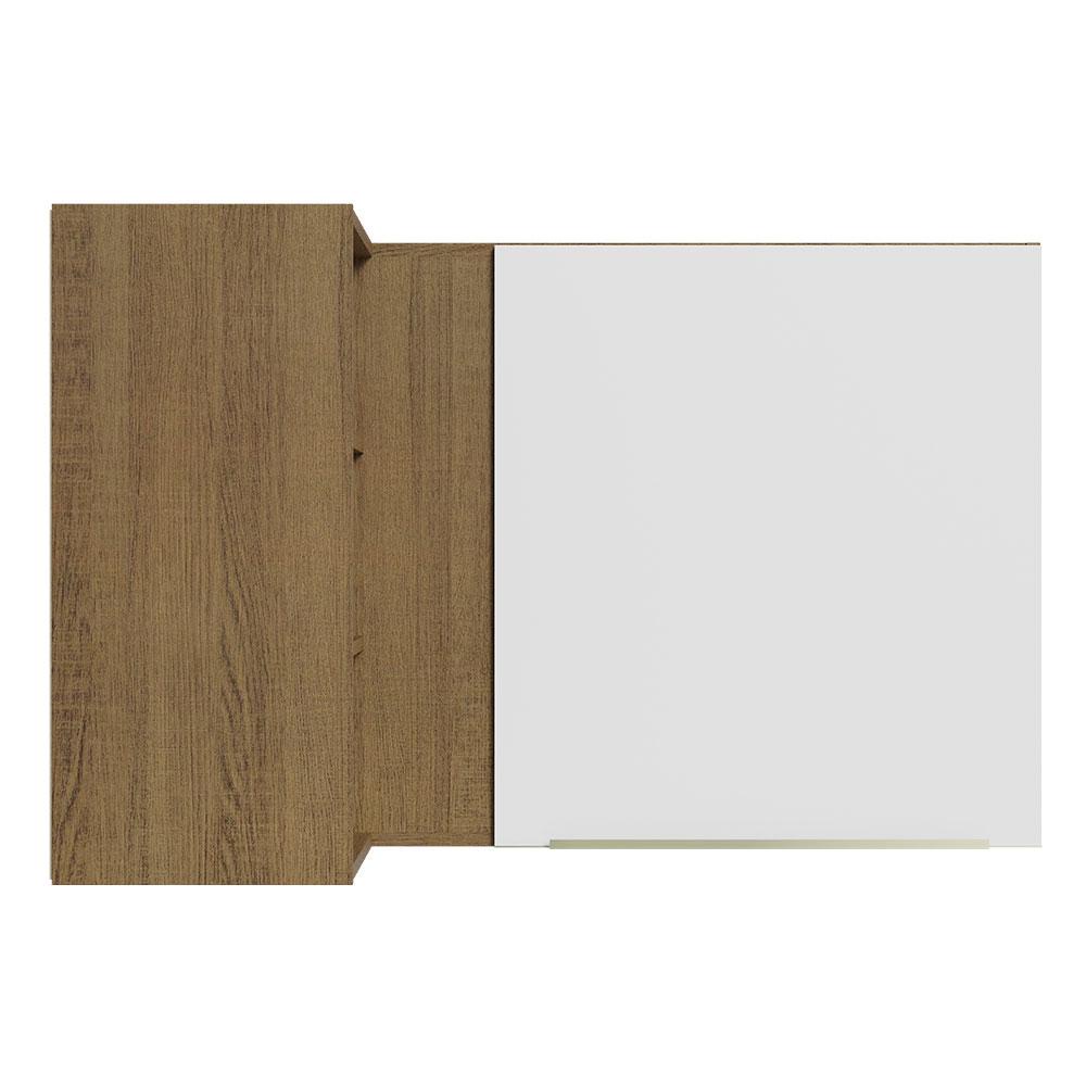 Armário Aéreo de Canto com Adega Acoplada Madesa Lux 1 Porta - Rustic/Branco Veludo