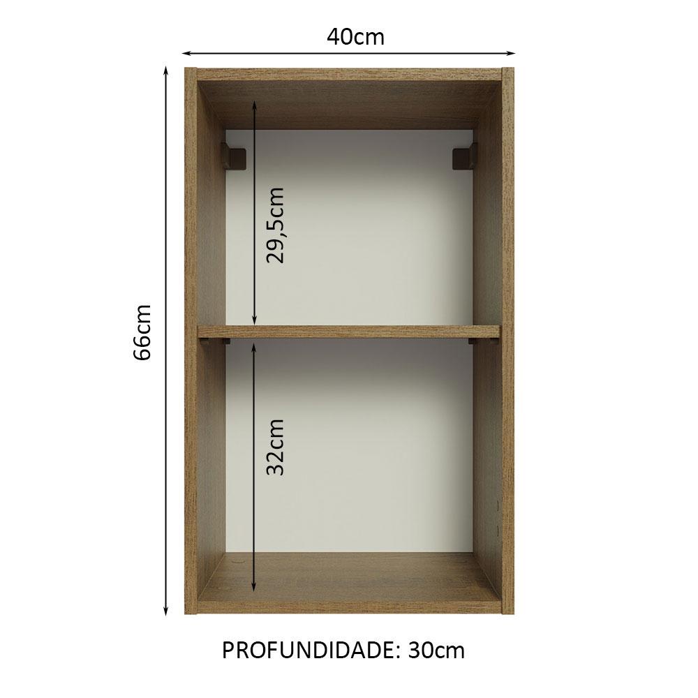 Armário Aéreo 40 cm com 2 Nichos Abertos para Cozinha Madesa Lux, Glamy, Agata, Stella - Rustic