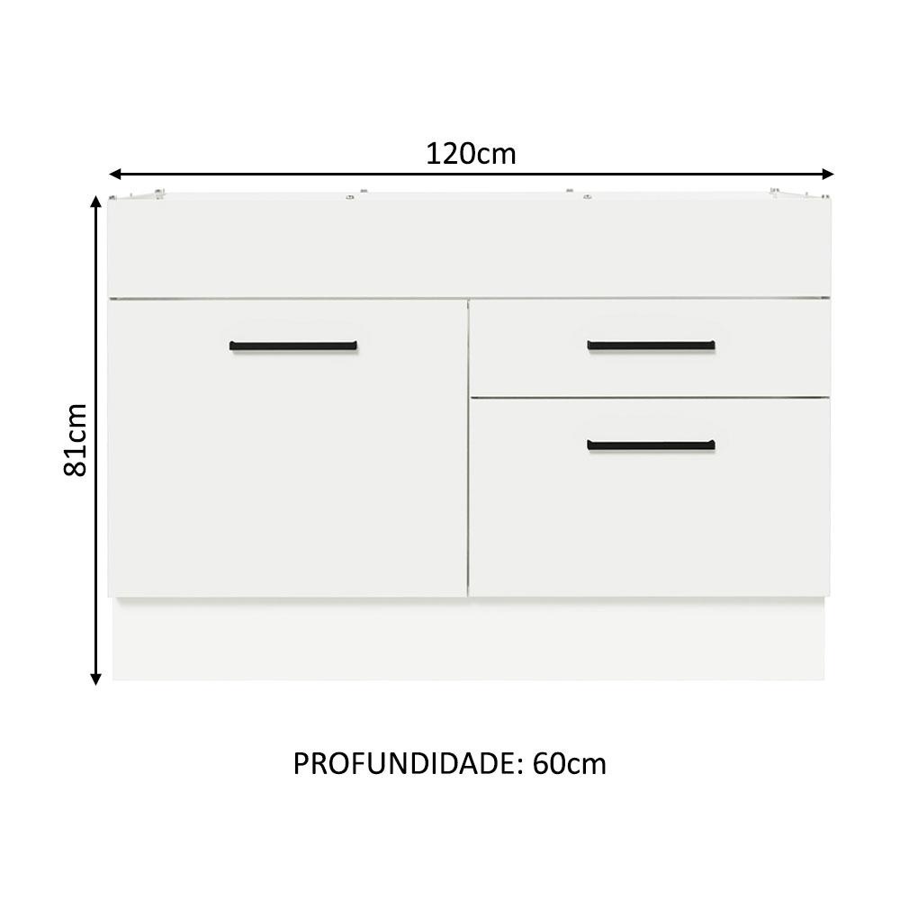 Balcão Gabinete de Pia Cozinha 120 x 60 cm 1 Porta 2 Gavetas Branco (Sem Tampo) Agata Madesa
