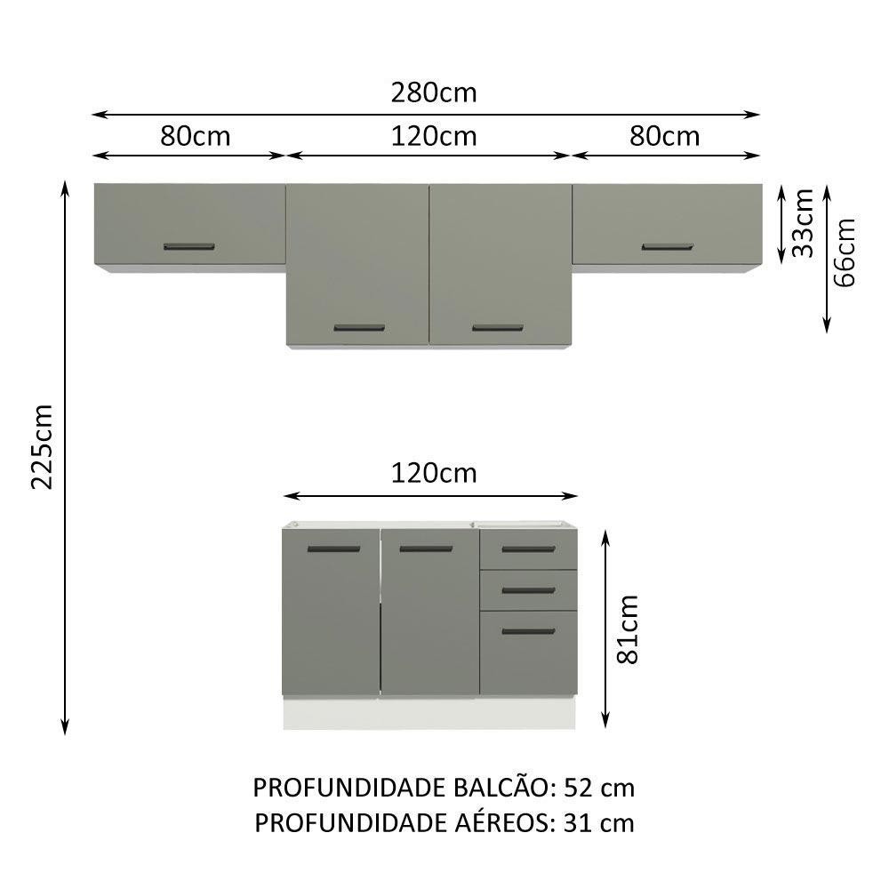 Armário de Cozinha Compacta 280cm Branco/Cinza Agata Madesa 02
