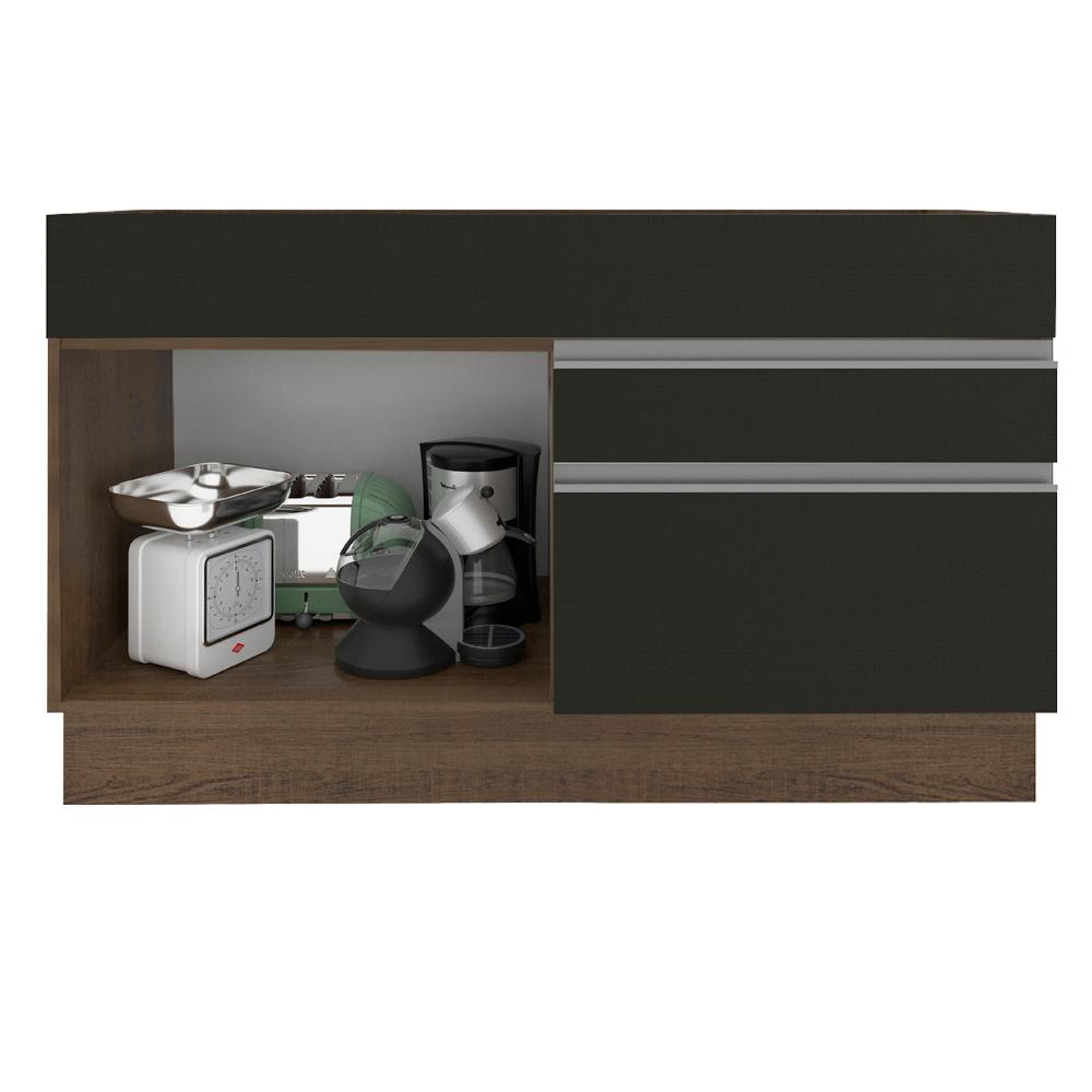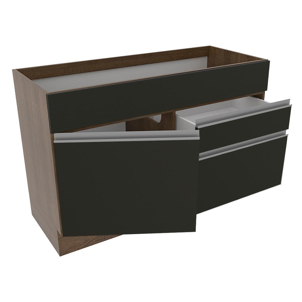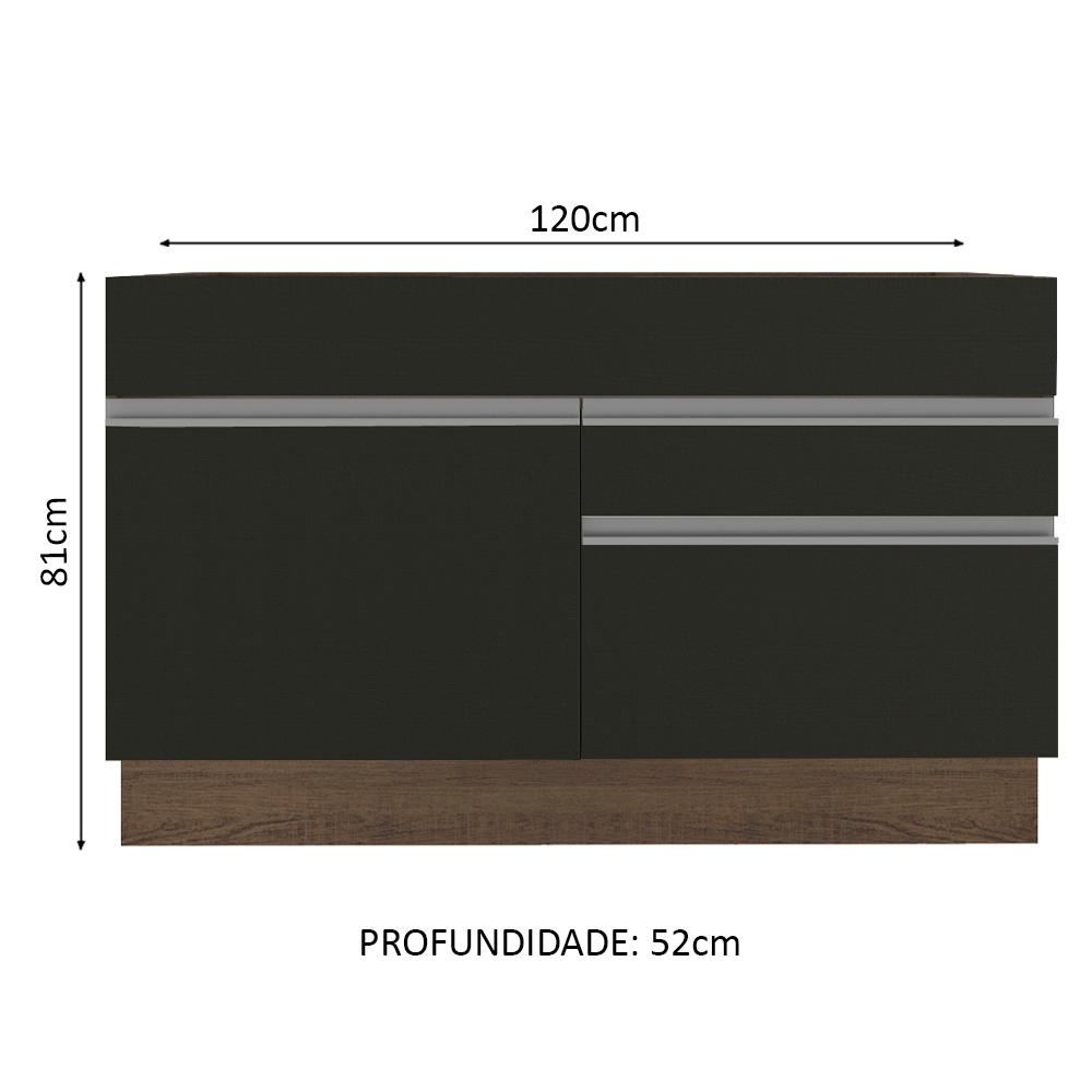 Balcão Gabinete de Pia Armário de Cozinha 120 cm 1 Porta 2 Gavetas Rustic/Preto Glamy Madesa