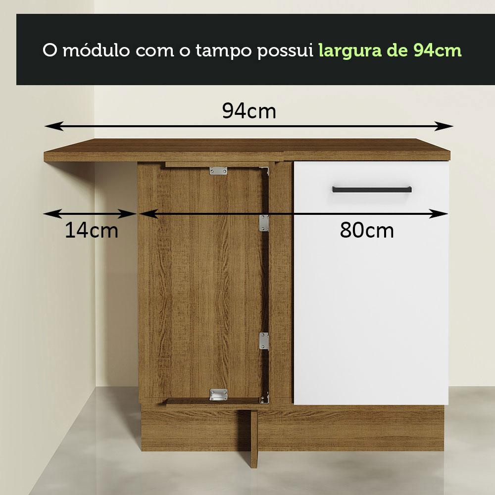 Balcão Armário de Cozinha de Canto 1 Porta Rustic/Branco Agata Madesa