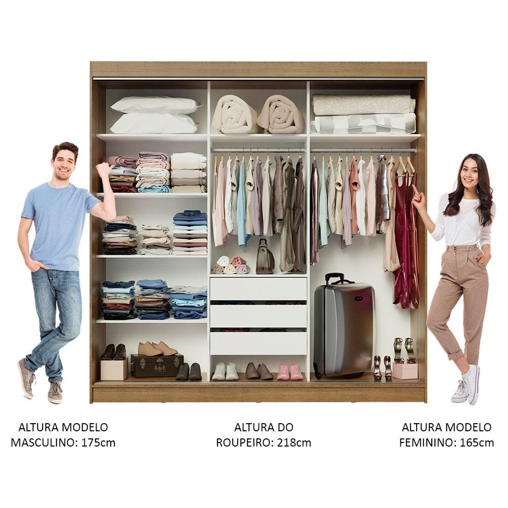 Guarda-Roupa Casal Madesa Austin 4 Portas de Correr de Espelho 3 Gavetas - Rustic/Preto