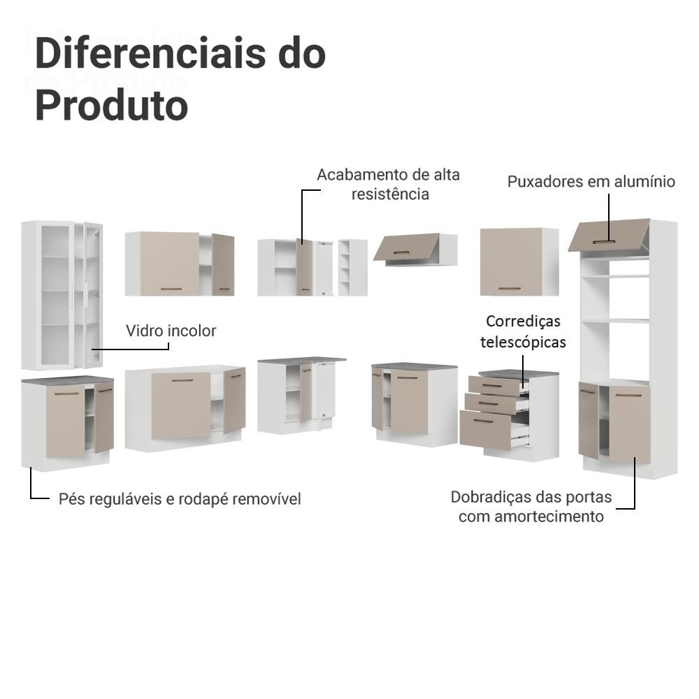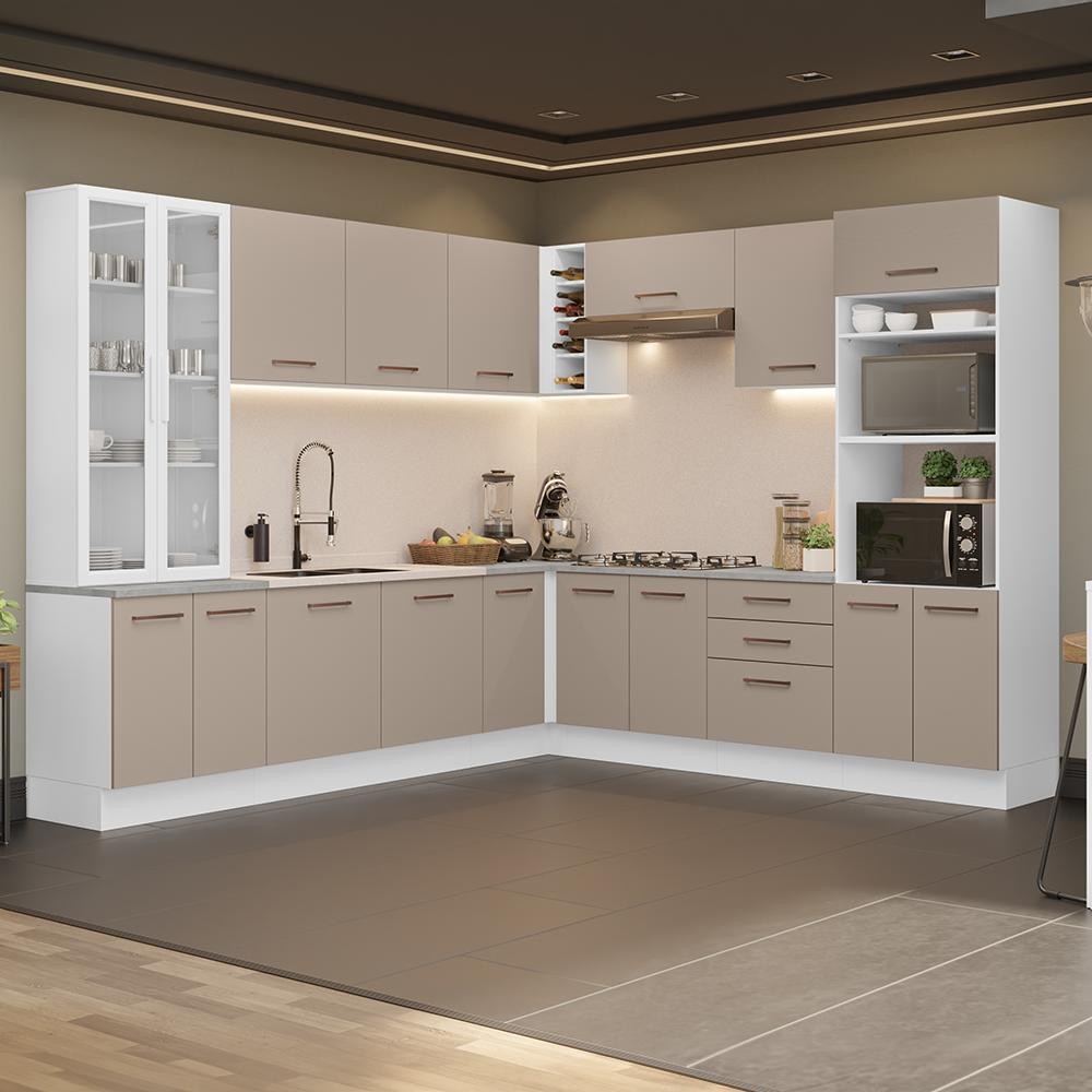 Armário de Cozinha Completa 549cm Branco/Crema Agata Madesa 01