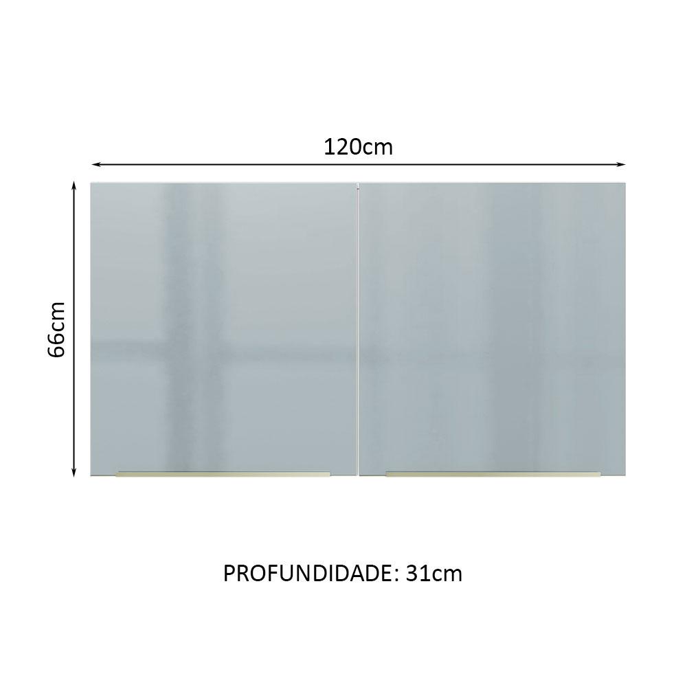 Armário Aéreo Madesa Lux 120 cm 2 Portas - Branco/Cinza