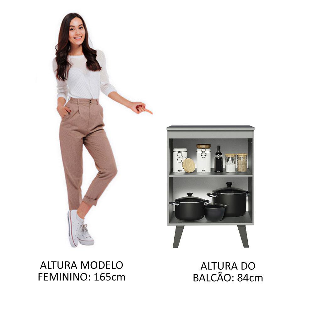 Balcão Armário de Cozinha 60 cm 1 Porta Com Pés Cinza Nice Madesa