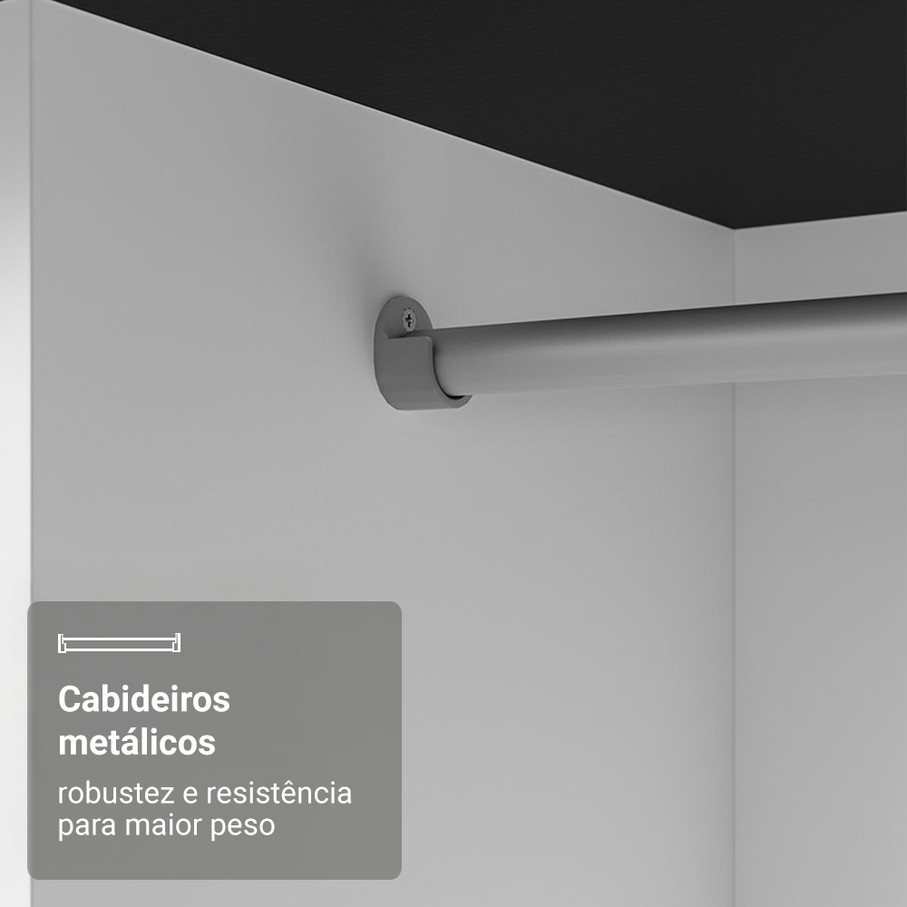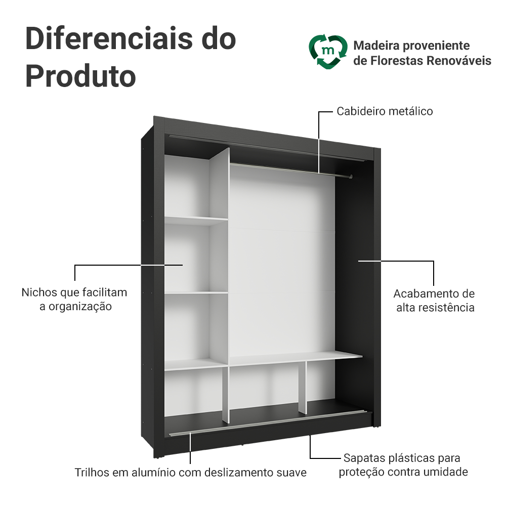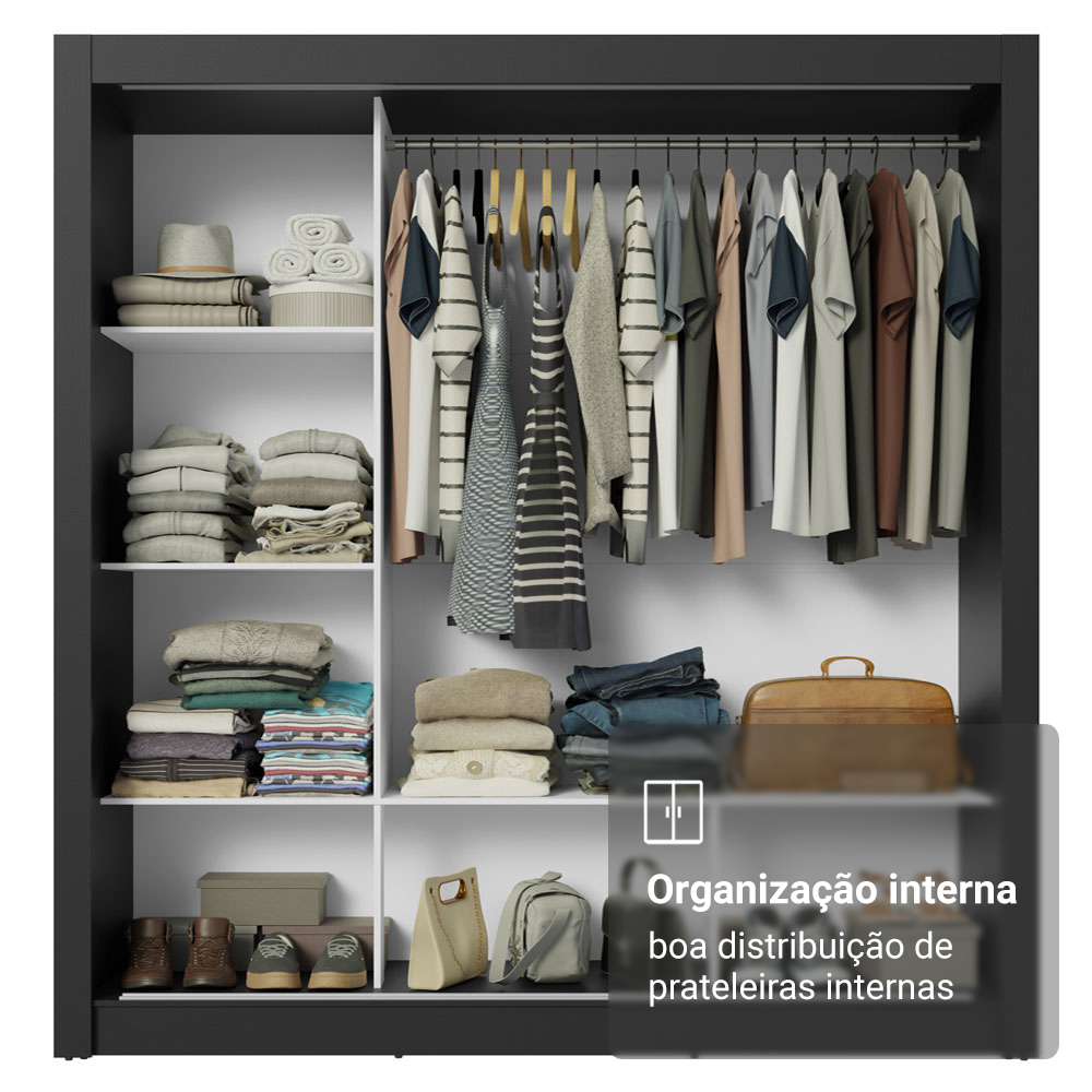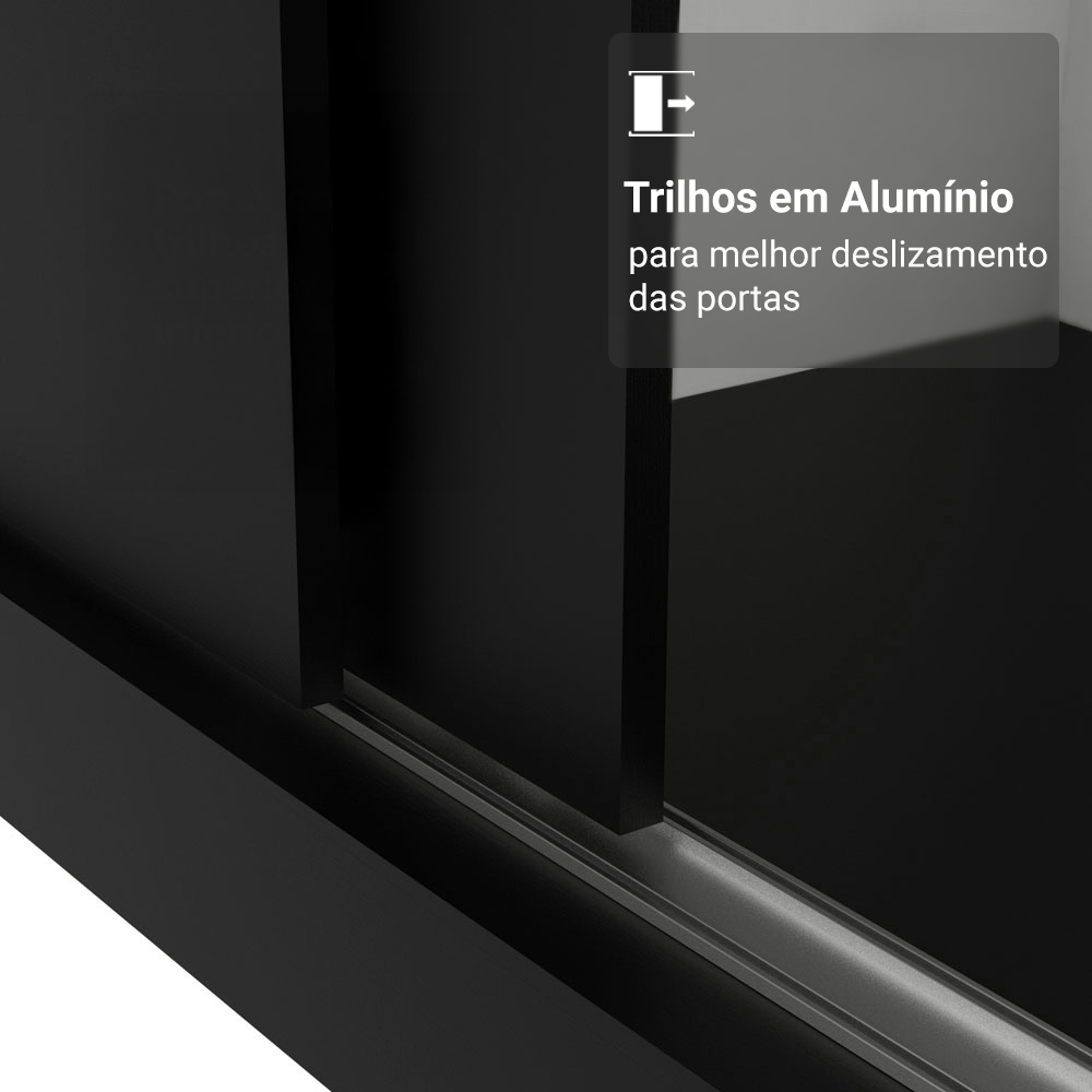Guarda Roupa Casal 3 Portas de Correr com Espelho Preto Madesa Mônaco