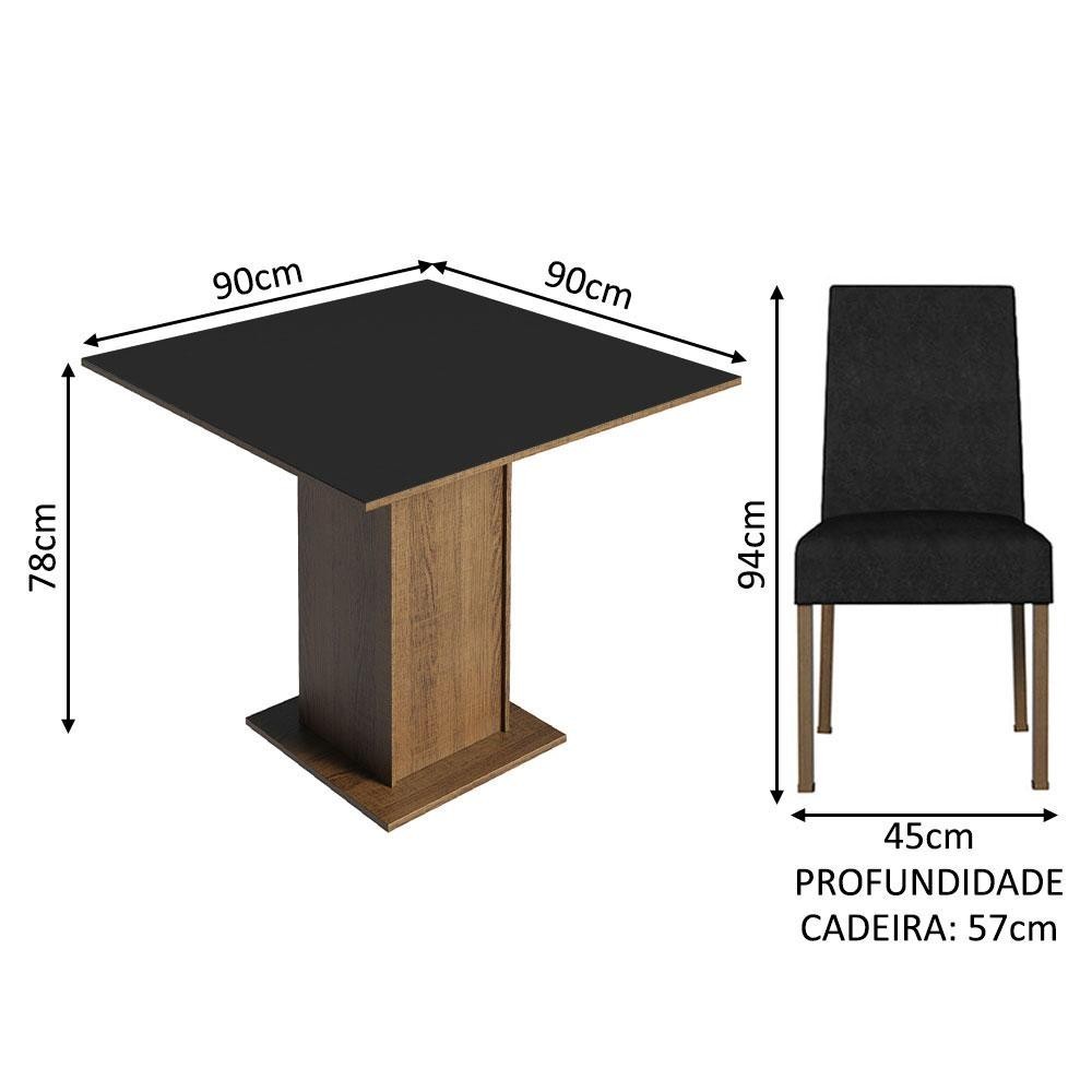 Conjunto Sala de Jantar Mesa Tampo de Madeira 4 Cadeiras Rustic/Preto/Oxford Karina Madesa