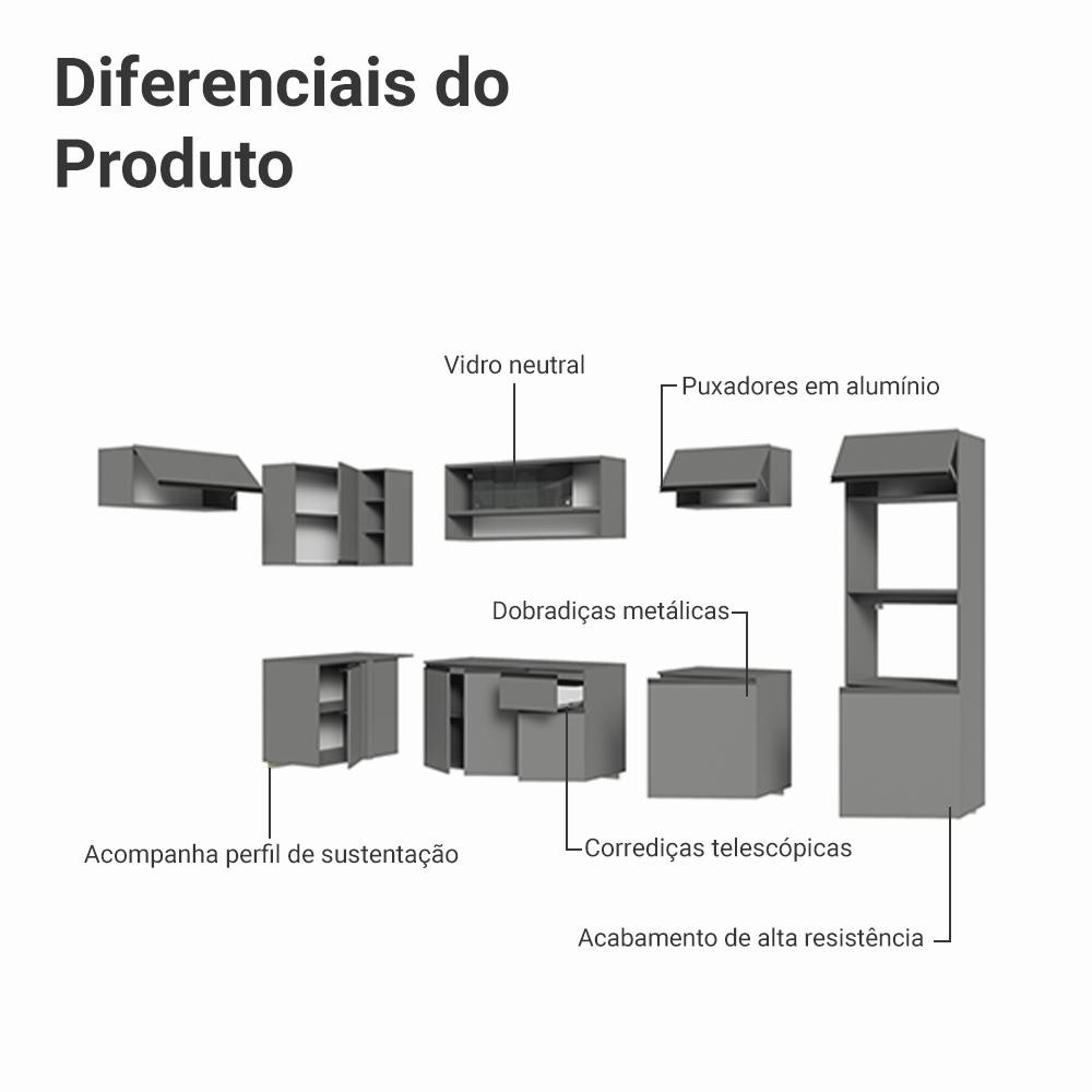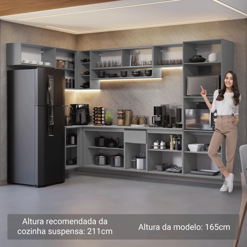 Armário de Cozinha Compacta de Canto Suspenso 465cm Cinza Nice Madesa 03