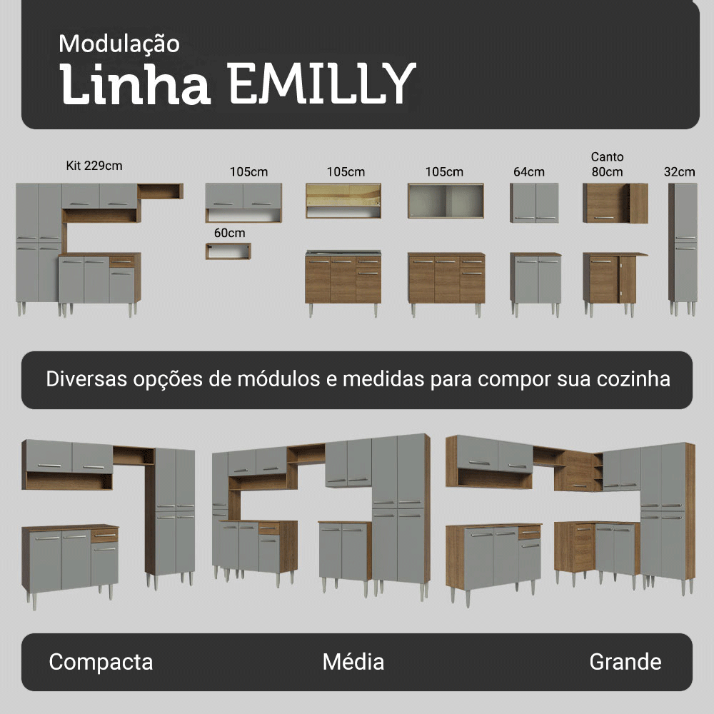 Armário de Cozinha Compacta Rustic/Cinza Emilly Top Madesa