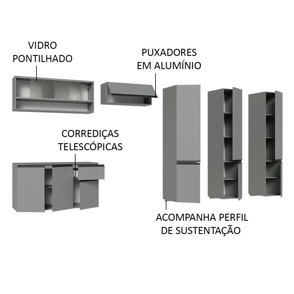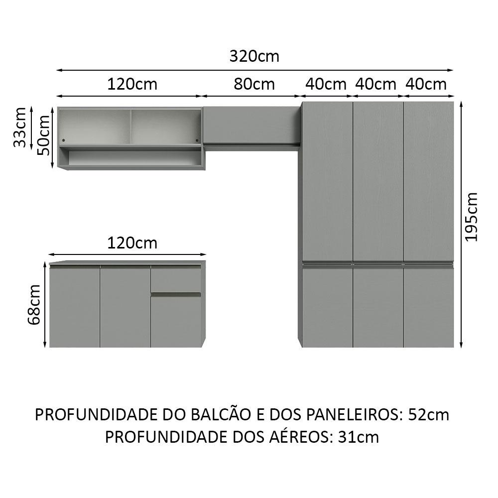 Armário de Cozinha Completa Suspenso 320cm Cinza Nice Madesa 05