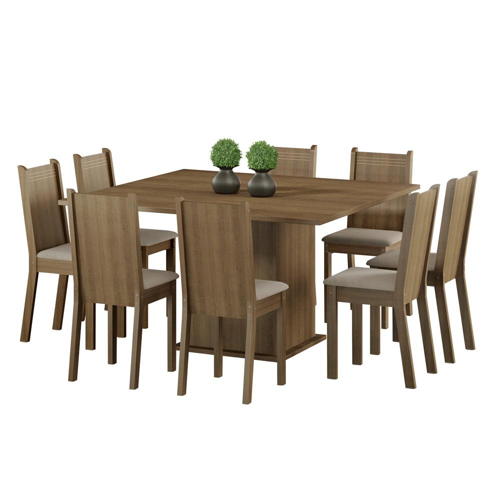 Conjunto Sala de Jantar Clarice Madesa Mesa Tampo de Madeira com 8 Cadeiras - Rustic/Pérola