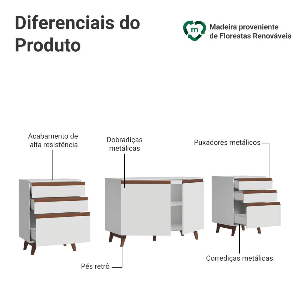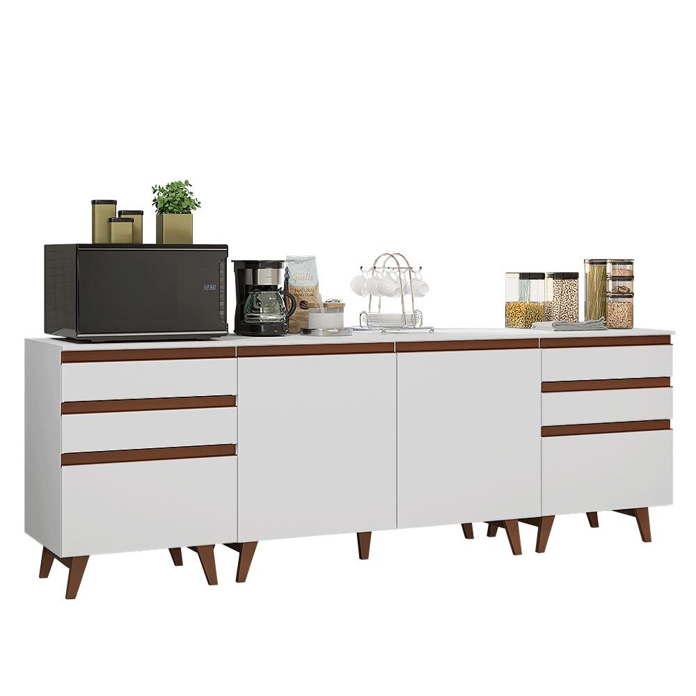 Kit com Três Balcões de Cozinha 2 Portas 6 Gavetas (com tampo) Branco Reims Madesa