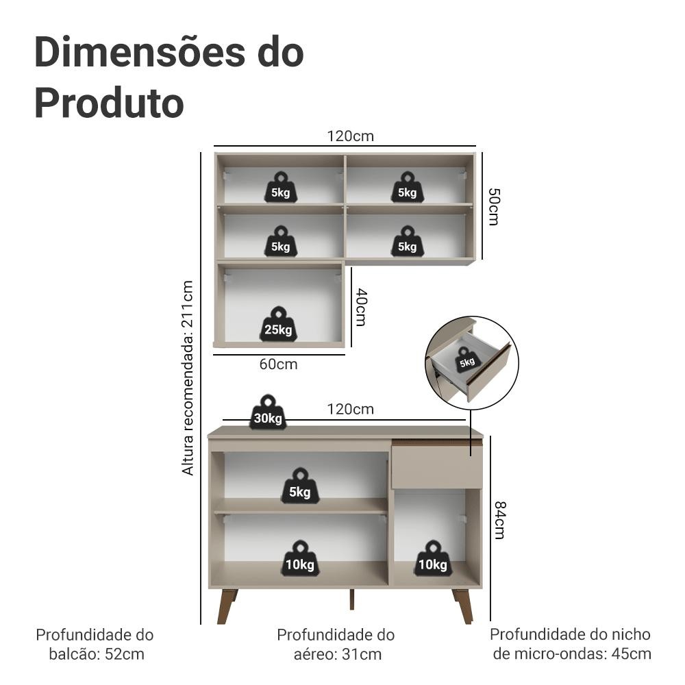 Armário de Cozinha Compacta 120 cm Nice Madesa 05