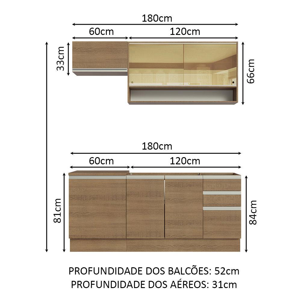 Armário de Cozinha Compacta 180cm Rustic Glamy Madesa 08