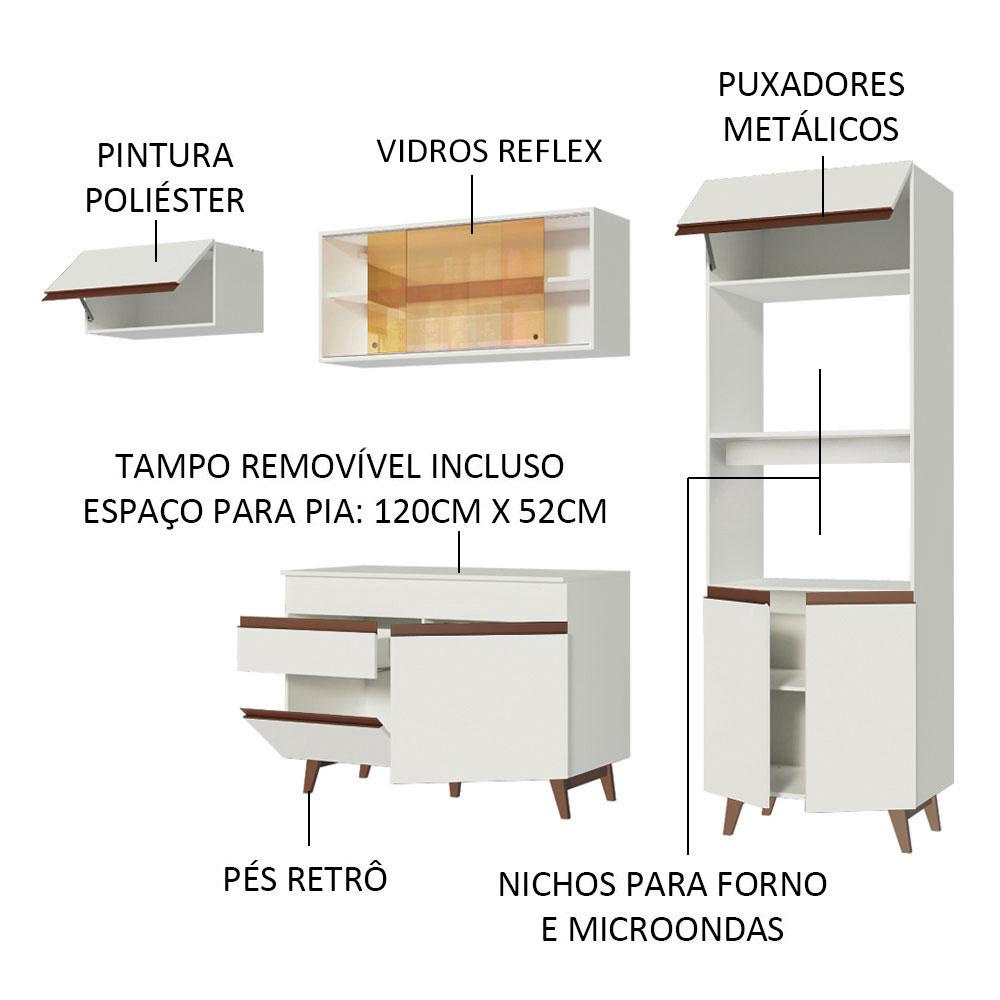 Cozinha Completa Madesa Reims XA260001 com Armário e Balcão - Branco