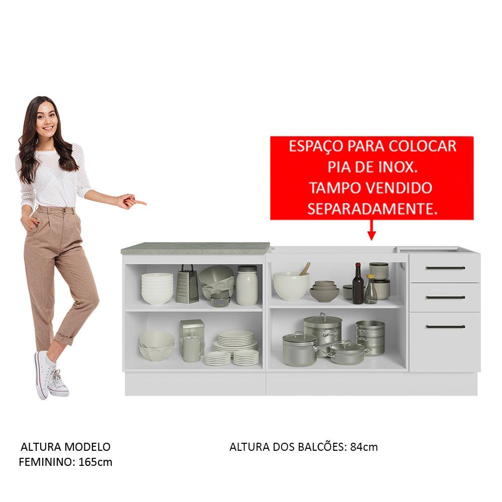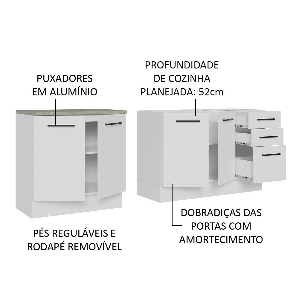 Kit com 2 Balcões de Cozinha Madesa Agata 3 Gavetas 4 Portas (Sem Tampo e Pia) - Branco