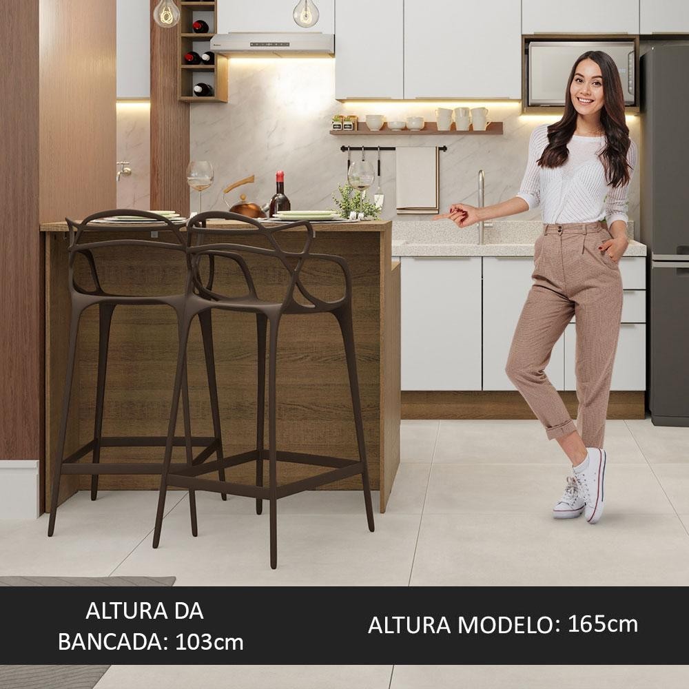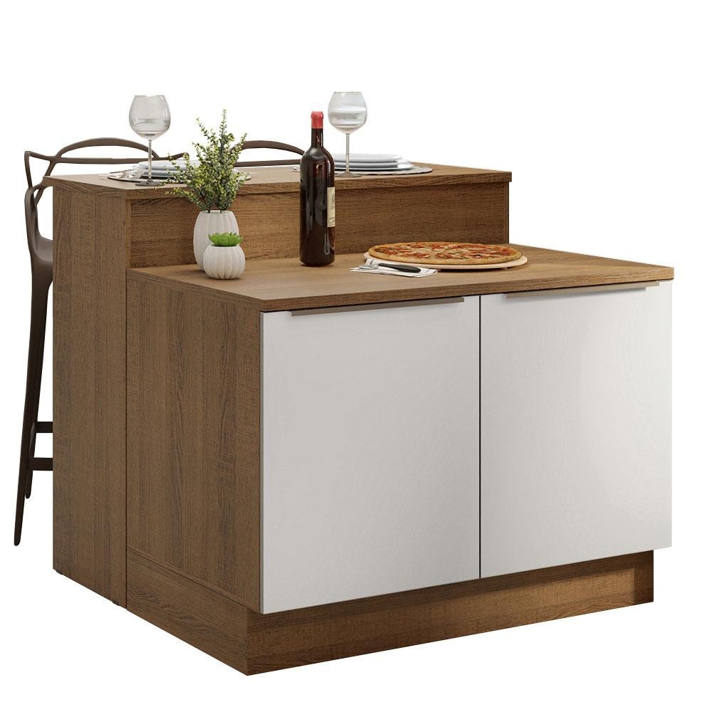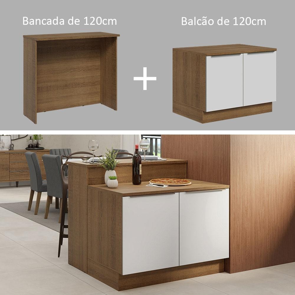 Ilha de Cozinha com Bancada e Balcão 120 cm Rustic/Branco Lux Madesa
