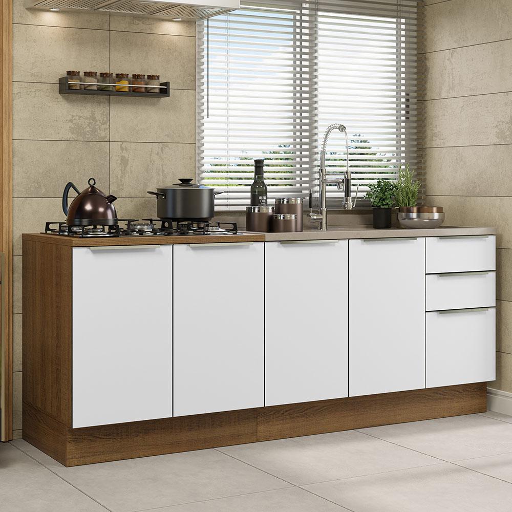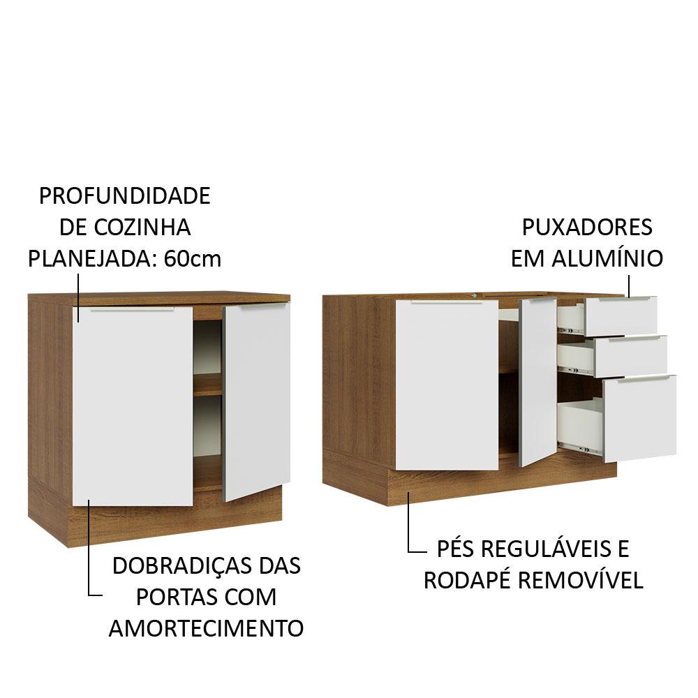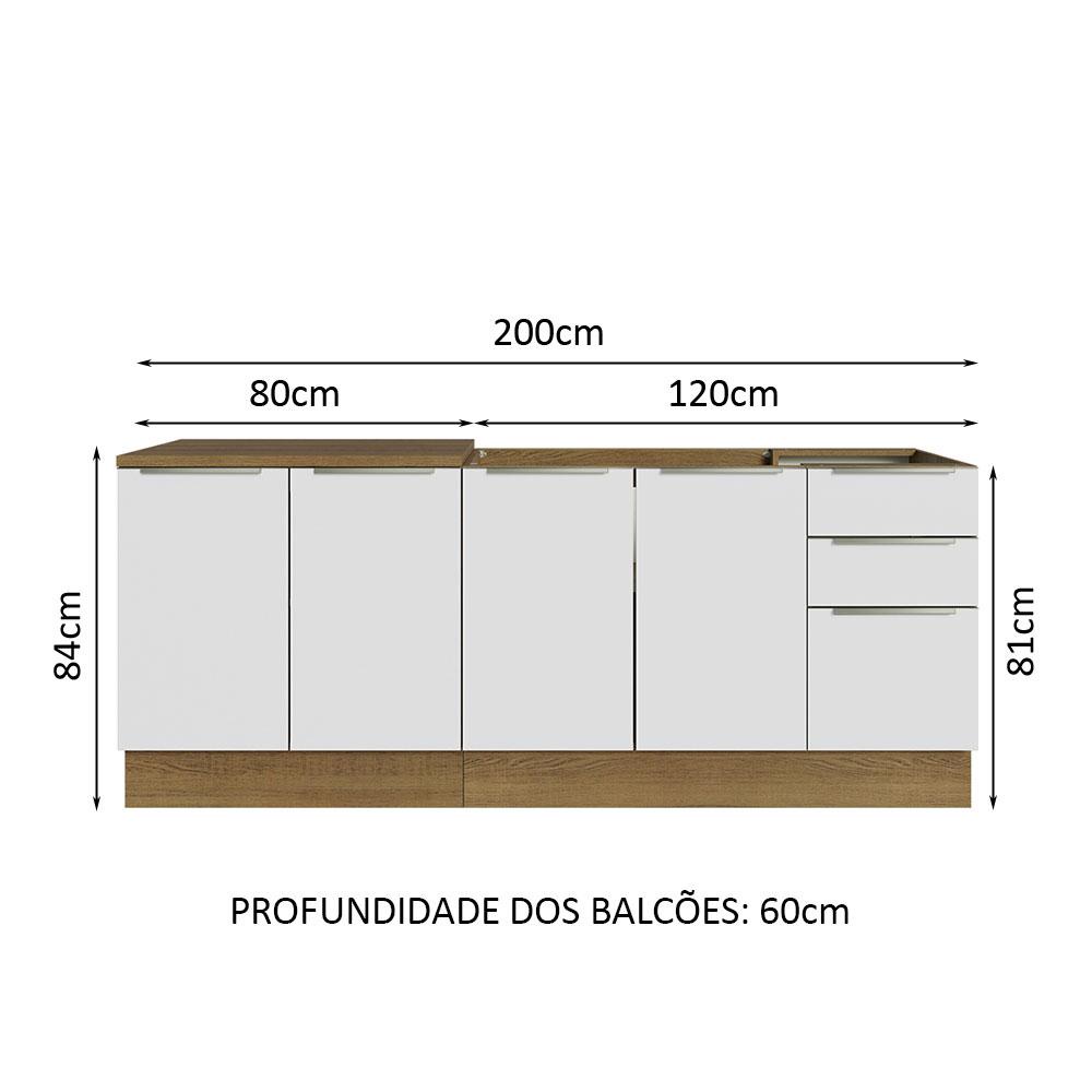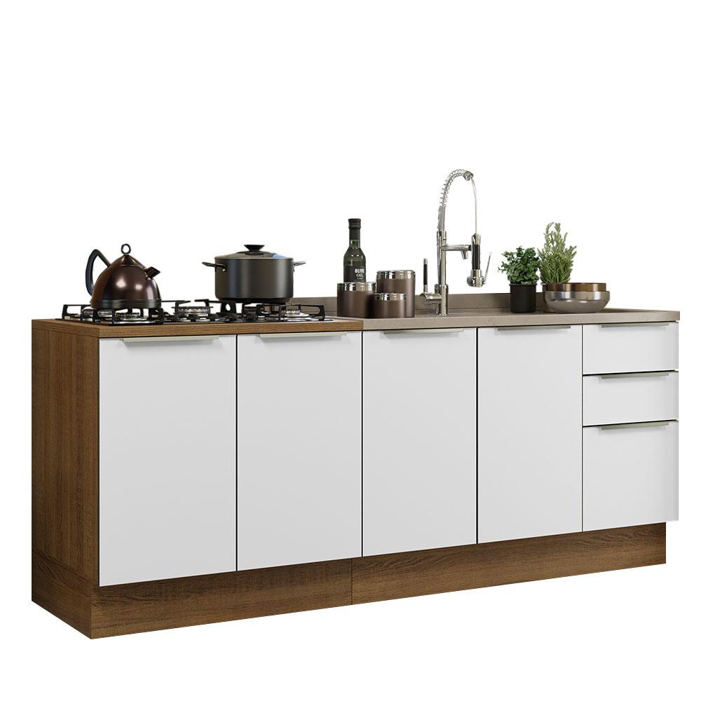 Kit com 2 Balcões de Cozinha Madesa Lux 4 Portas 3 Gavetas (Sem Tampo e Pia) Rustic/Branco Veludo