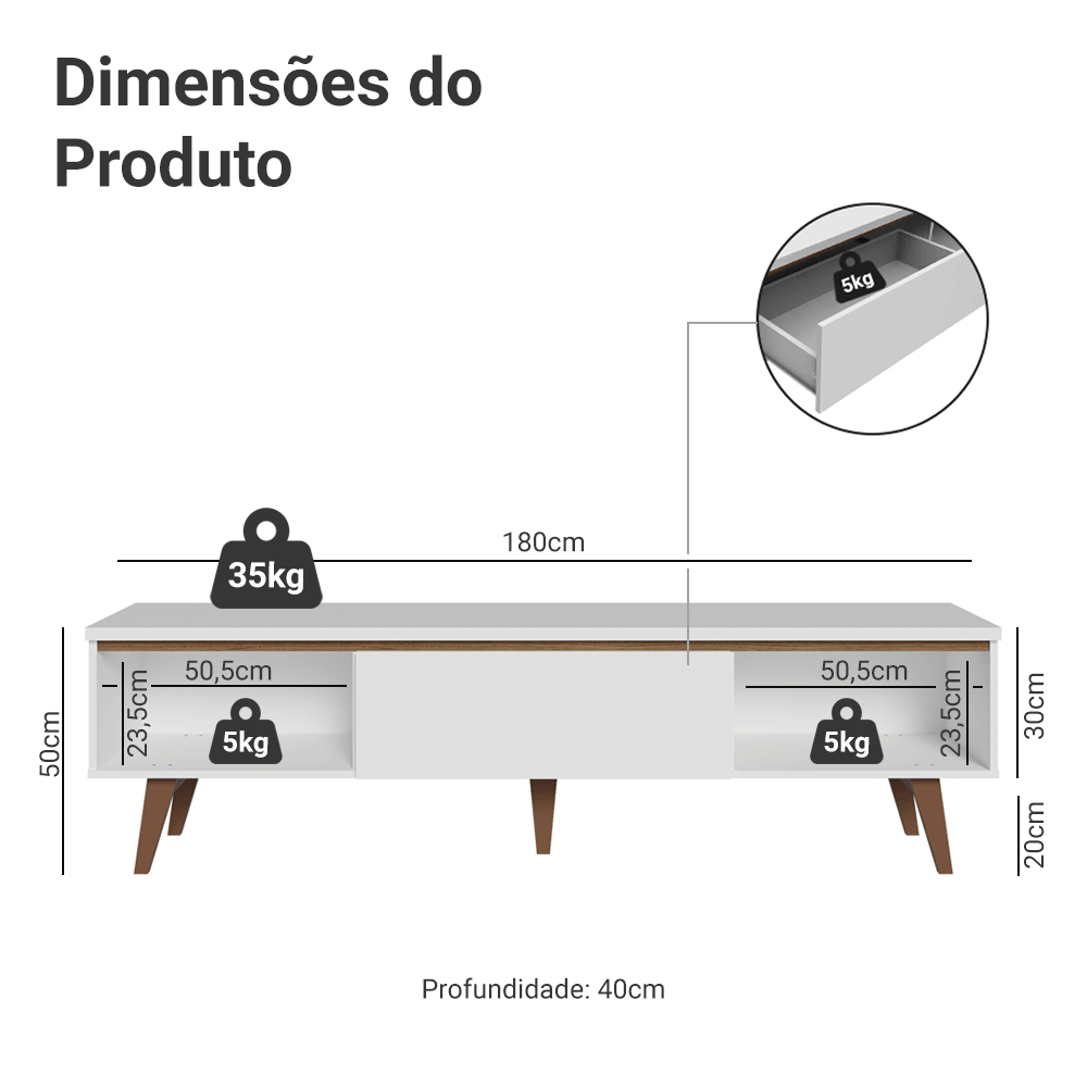 Rack para TV Reims Madesa até 75 Polegadas 2 Portas 1 Gaveta - Branco