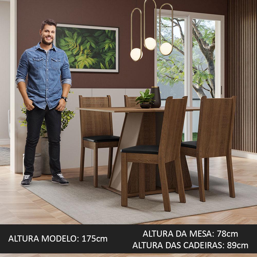 Conjunto Sala de Jantar Mesa Tampo de Madeira 4 Cadeiras Rustic/Crema/Preto Marilyn Madesa