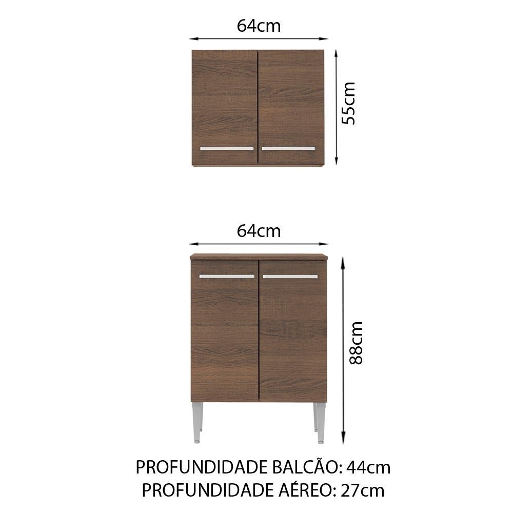 Kit com Armário Aéreo e Balcão 64cm Emilly Madesa