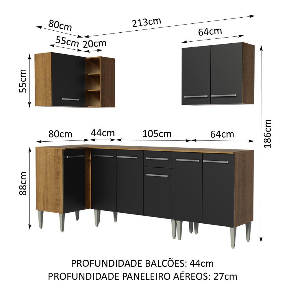 Cozinha Completa de Canto Madesa Emilly Open com Armário e Balcão