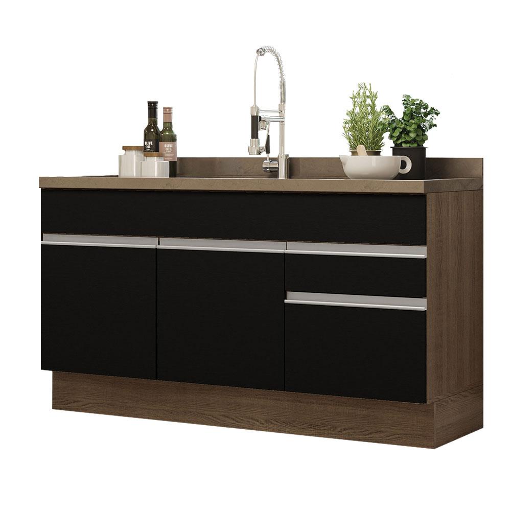 Balcão Gabinete de Pia Cozinha 150 cm 2 Gavetas 2 Portas (Sem Tampo e Pia) Rustic/Preto Glamy Madesa