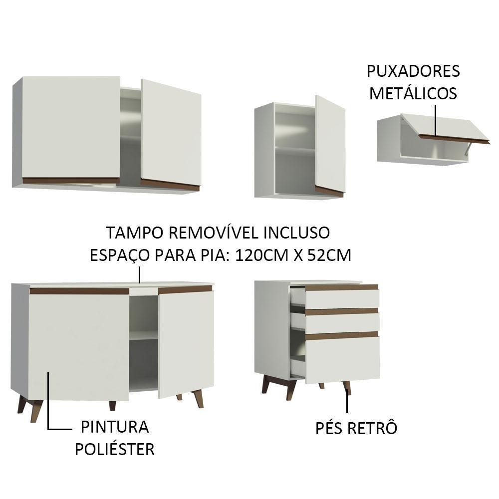 Cozinha Completa Madesa Reims 250002 com Armário e Balcão - Branco