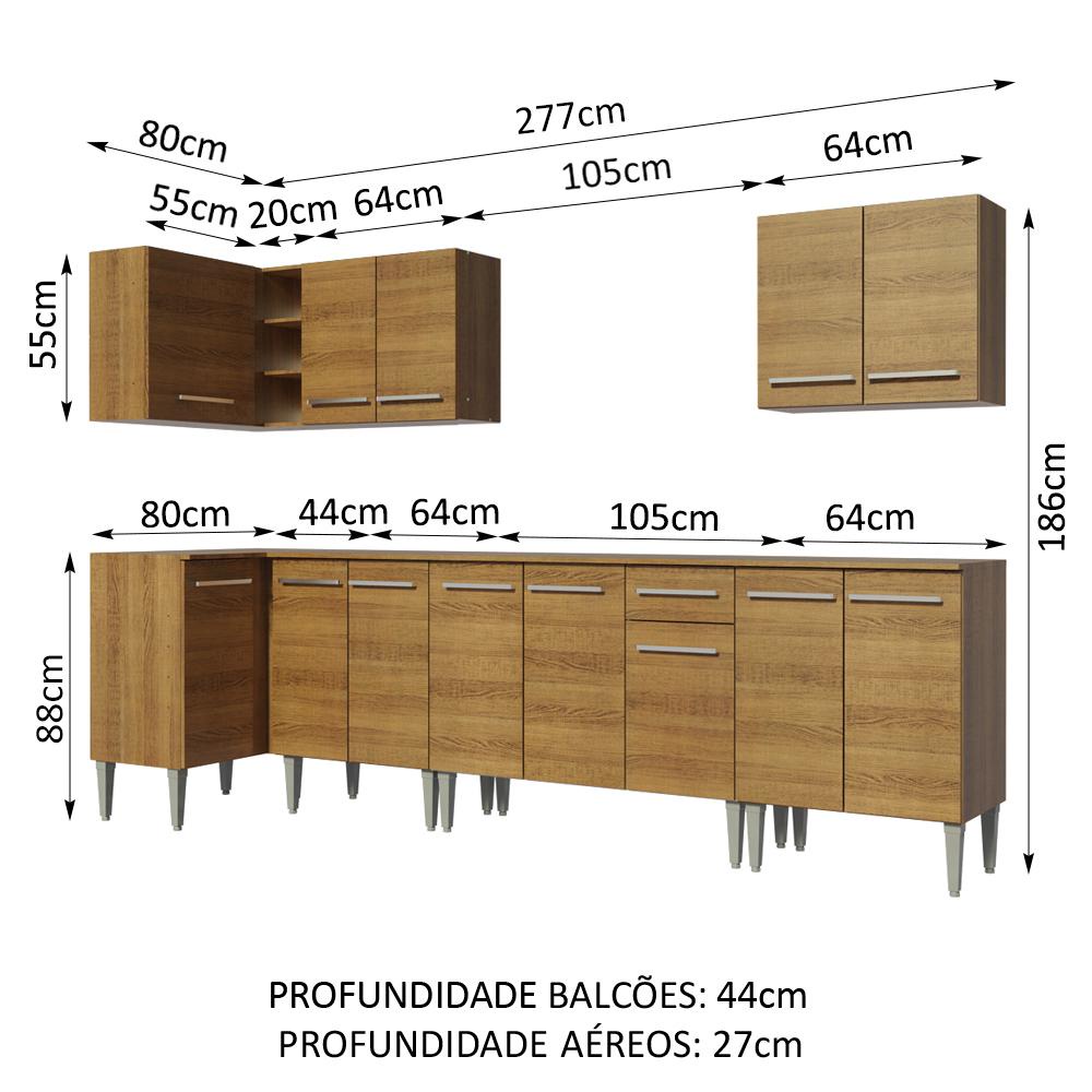 Cozinha Completa de Canto Madesa Emilly Rock com Armário, Balcão e Adega - Rustic