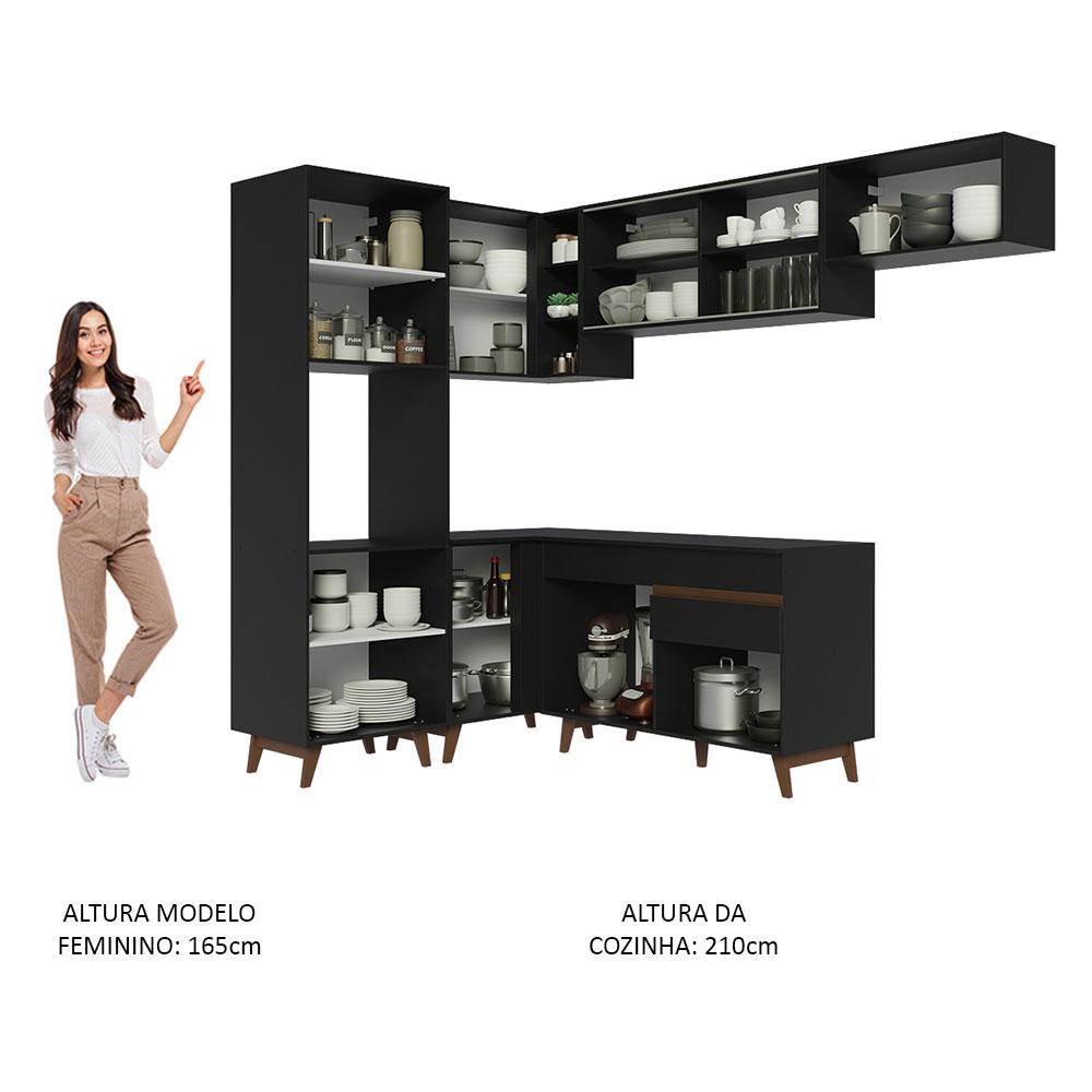 Armário de Cozinha Completa de Canto 392cm Preto Reims Madesa 03