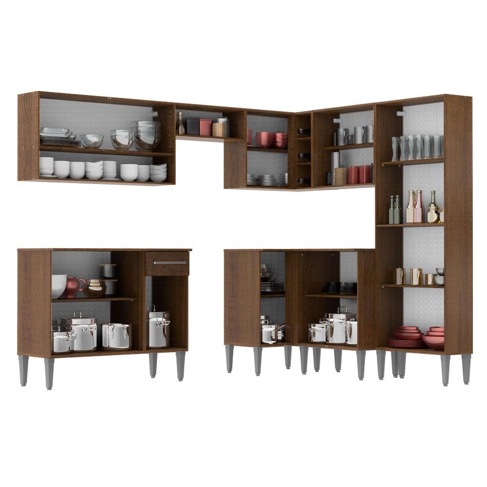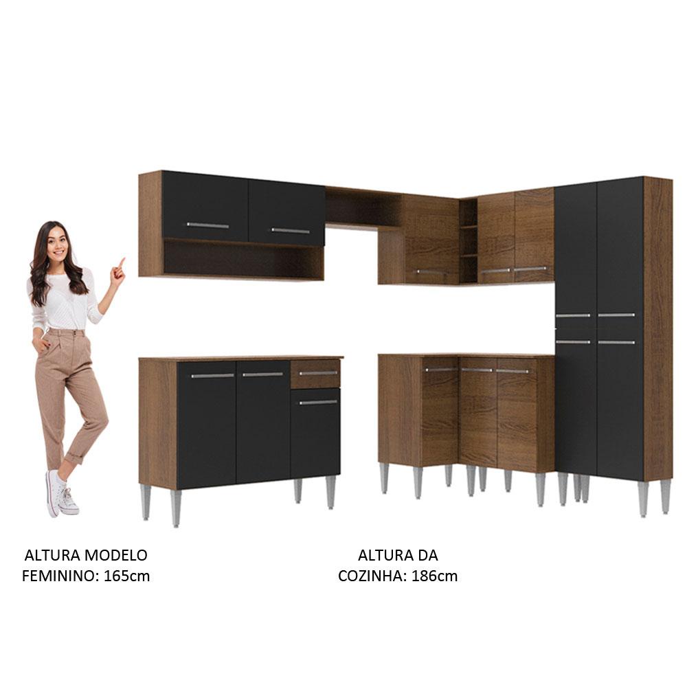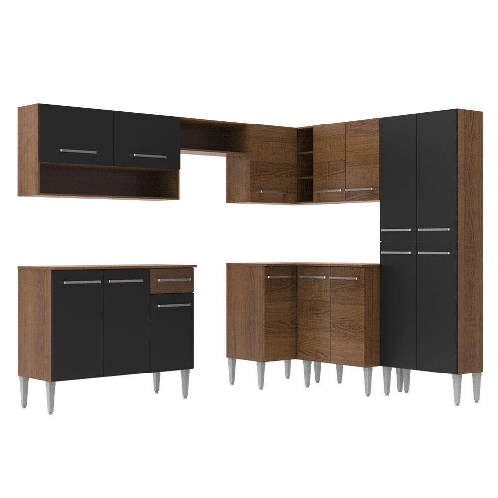 Armário de Cozinha Completa de Canto Madesa Emilly Rock com Balcão e Adega - Rustic/Preto