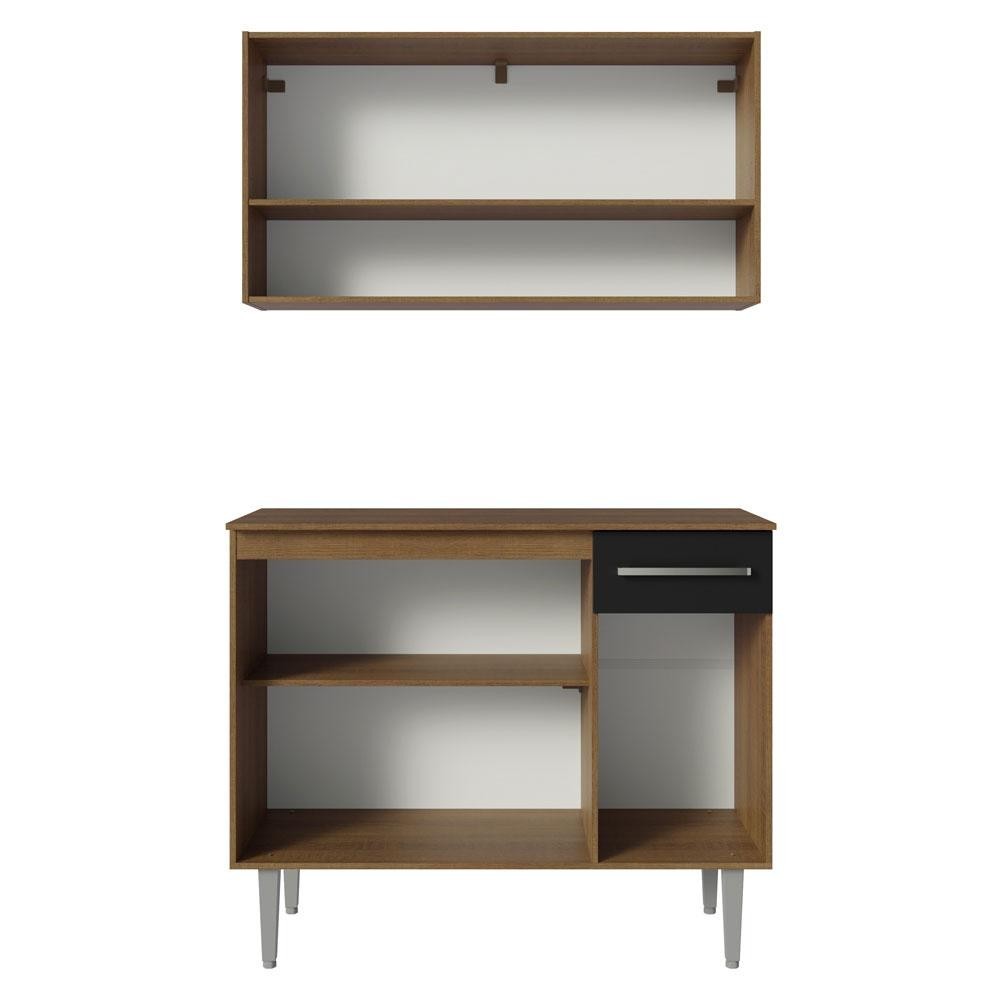 Armário de Cozinha Compacta 105cm Rustic/Preto Emilly Madesa 03
