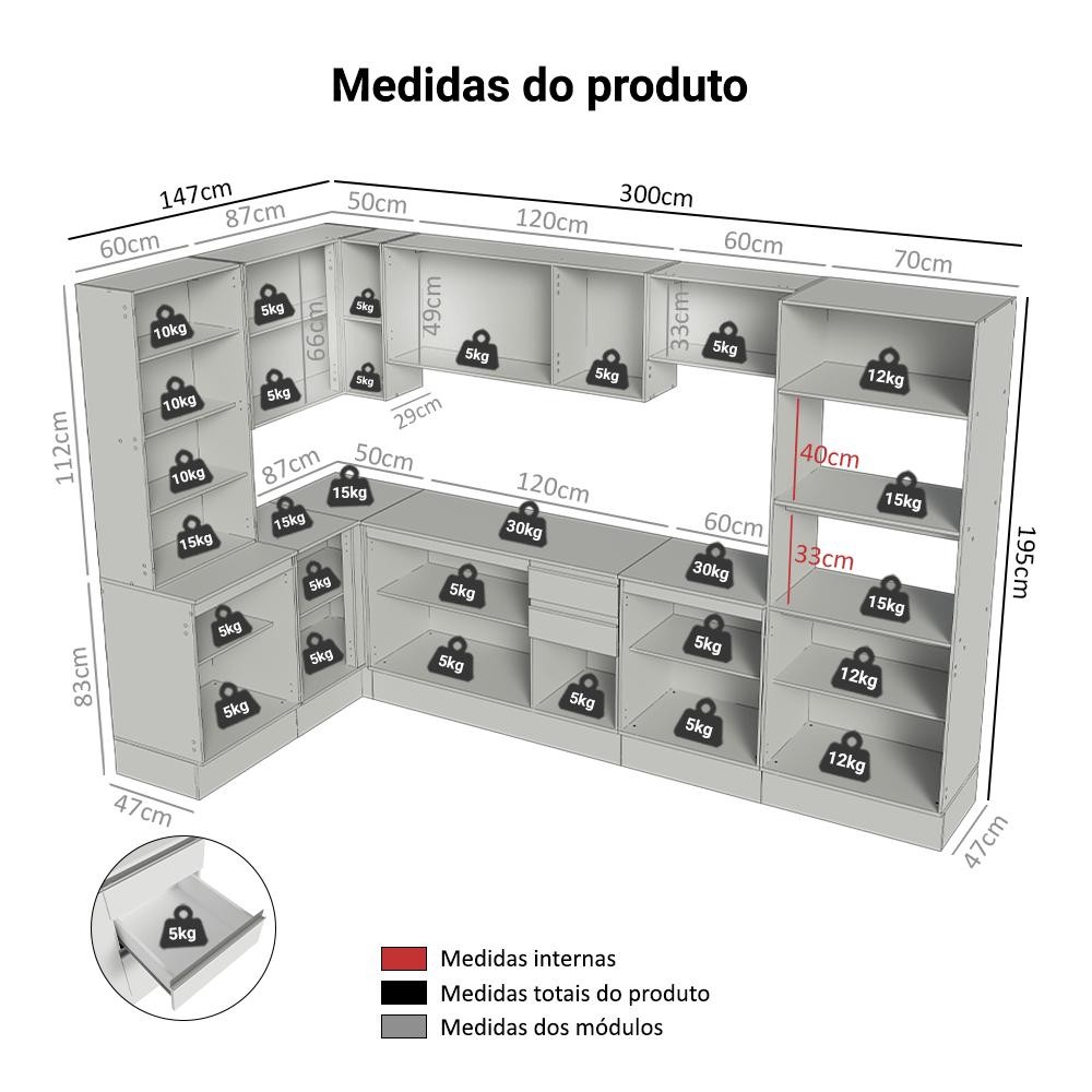 Armário de Cozinha Completa de Canto 100% MDF 447 cm Branco Smart Madesa 02