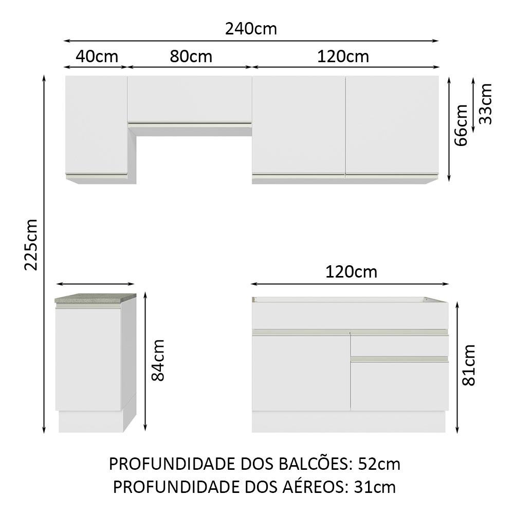 Armário de Cozinha Completa 240cm Branco Glamy Madesa 07