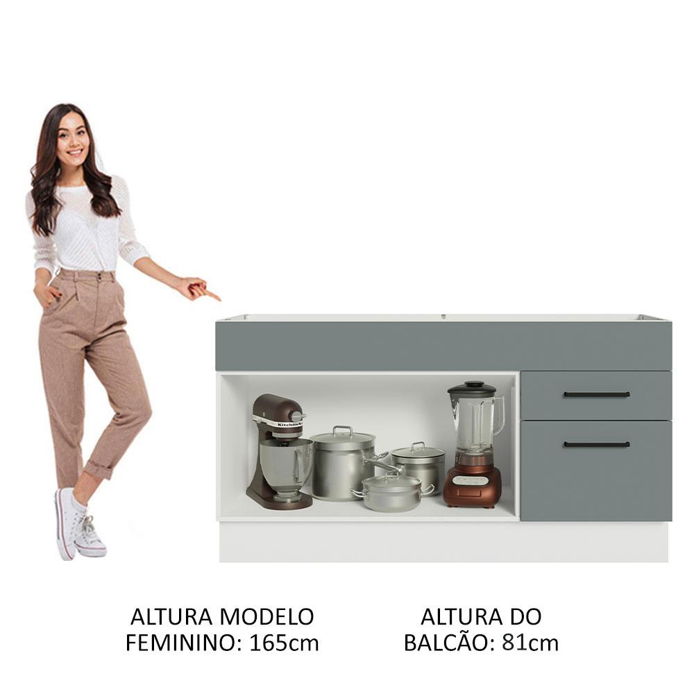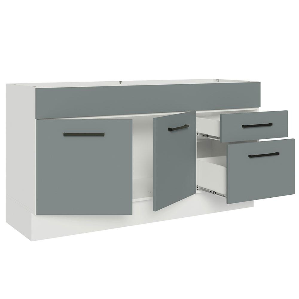 Balcão Gabinete de Pia Cozinha 150 cm 2 Portas 2 Gavetas (Sem Tampo e Pia) Branco/Cinza Agata Madesa