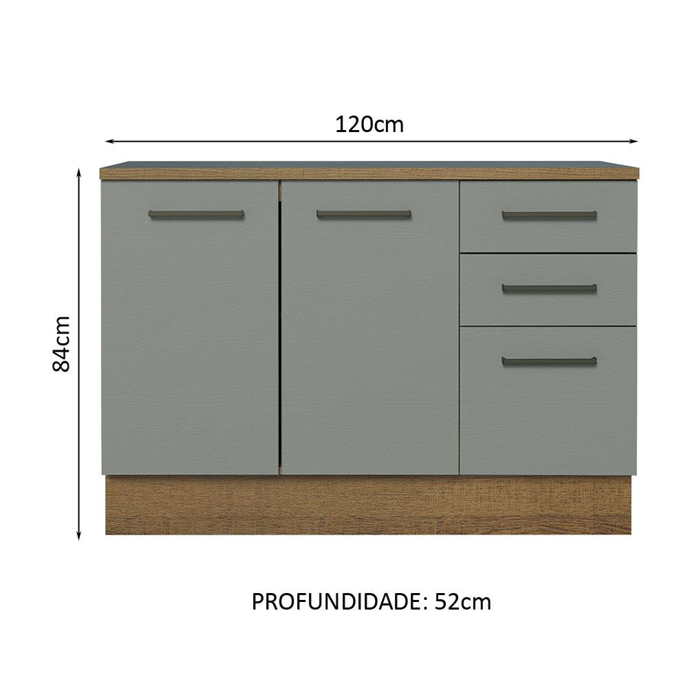 Balcão de Pia Cozinha 2 Portas e 3 Gavetas (Com Tampo) Rustic/Cinza Agata Madesa