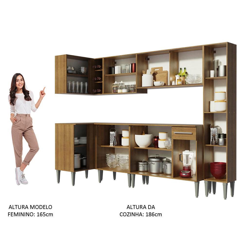 Cozinha Completa de Canto Madesa Emilly Wave com Armário Vidro Reflex, Balcão e Paneleiro