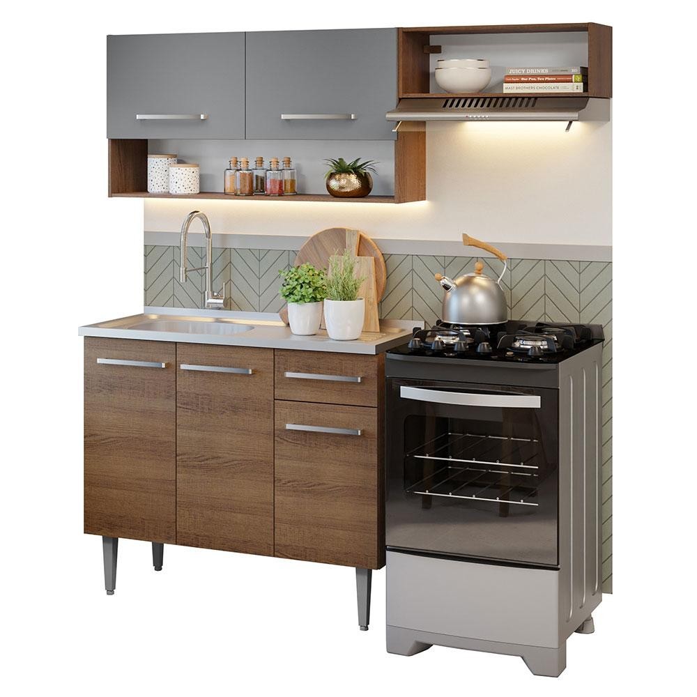 Armário de Cozinha Compacta 165cm com Pia Rustic/Cinza Emilly Madesa 09