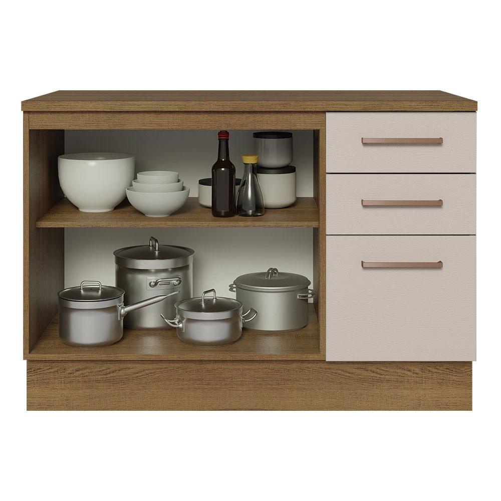 Balcão de Pia Cozinha 2 Portas e 3 Gavetas (Com Tampo) Rustic/Crema Agata Madesa