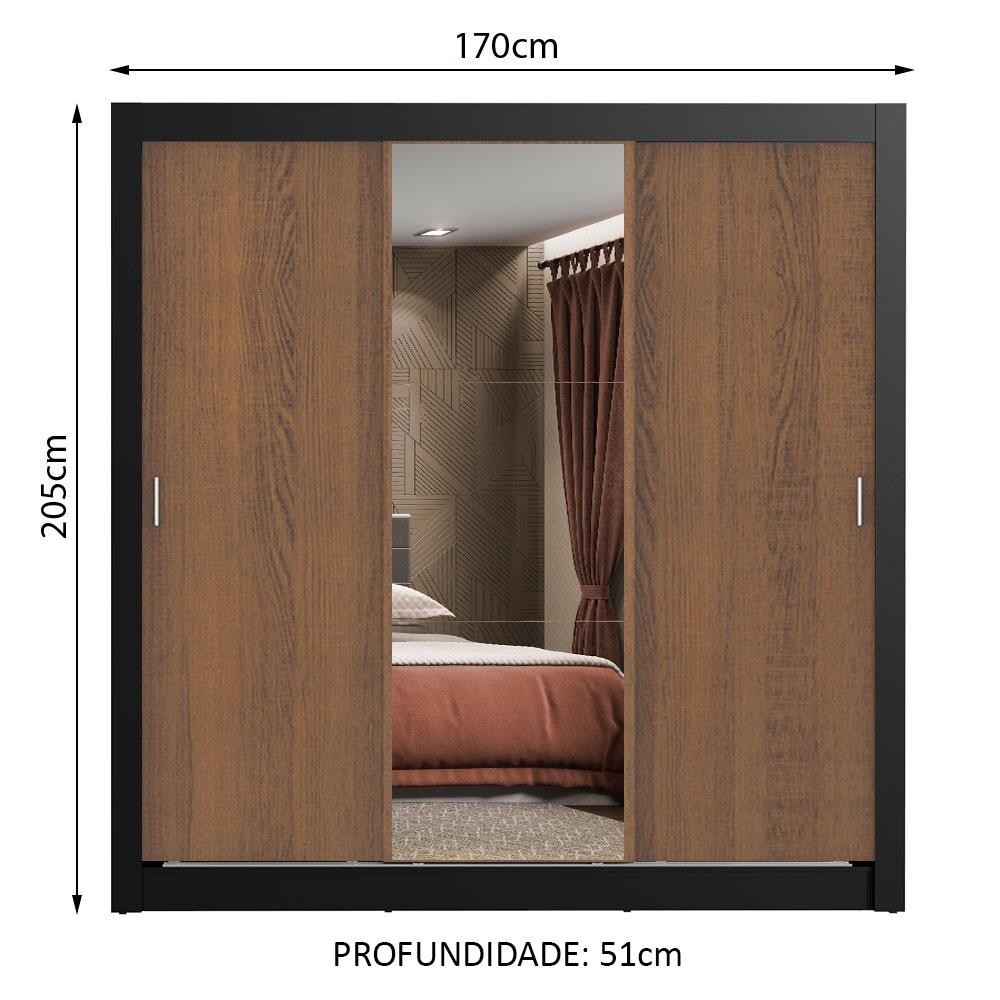 Guarda Roupa Casal Madesa Lyon 3 Portas de Correr com Espelho 2 Gavetas