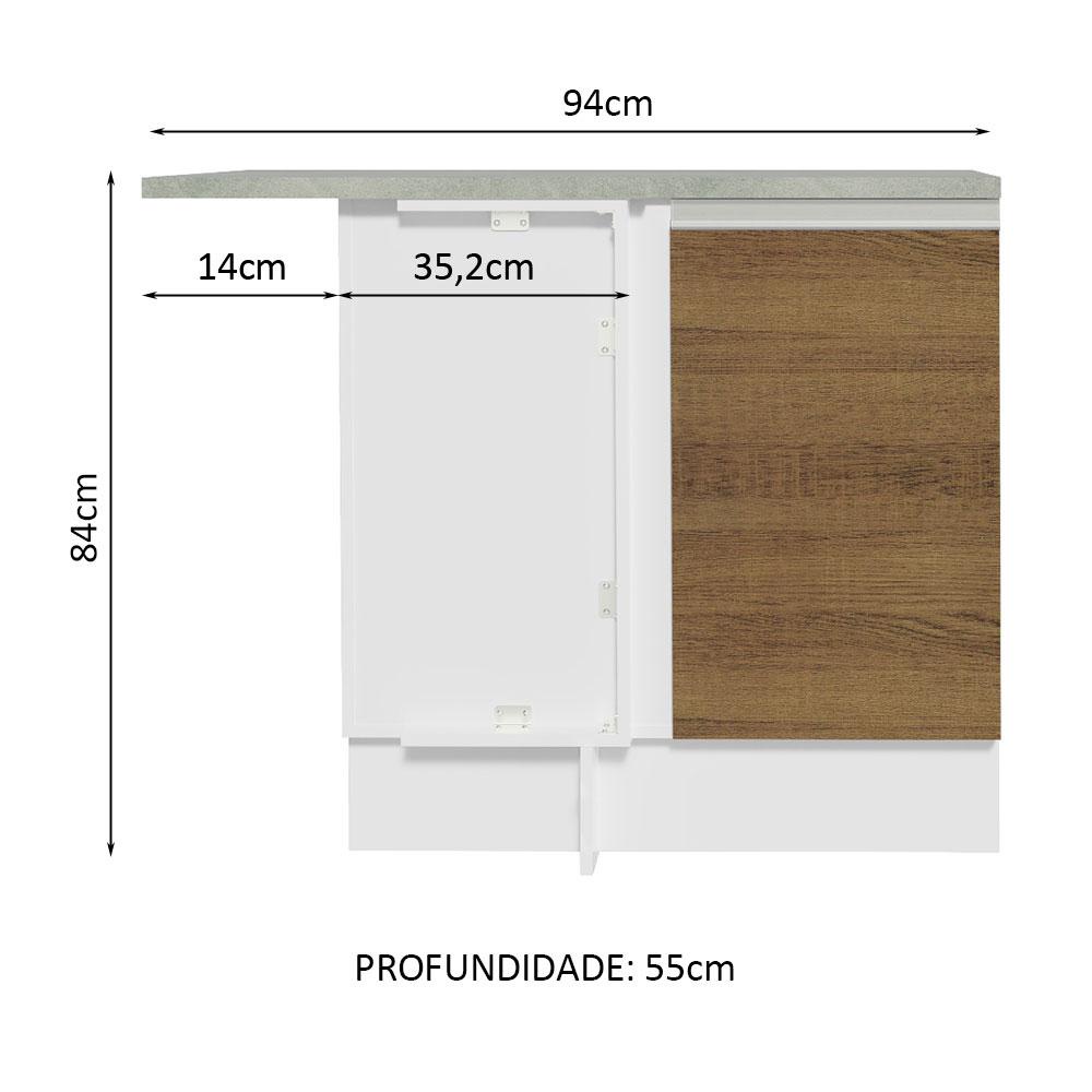 Balcão Armário de Cozinha de Canto 1 Porta Branco/Rustic Glamy Madesa